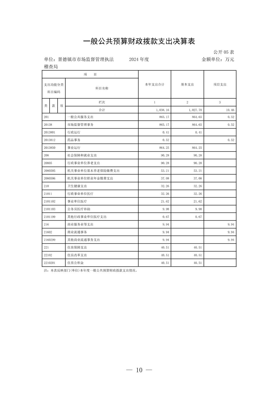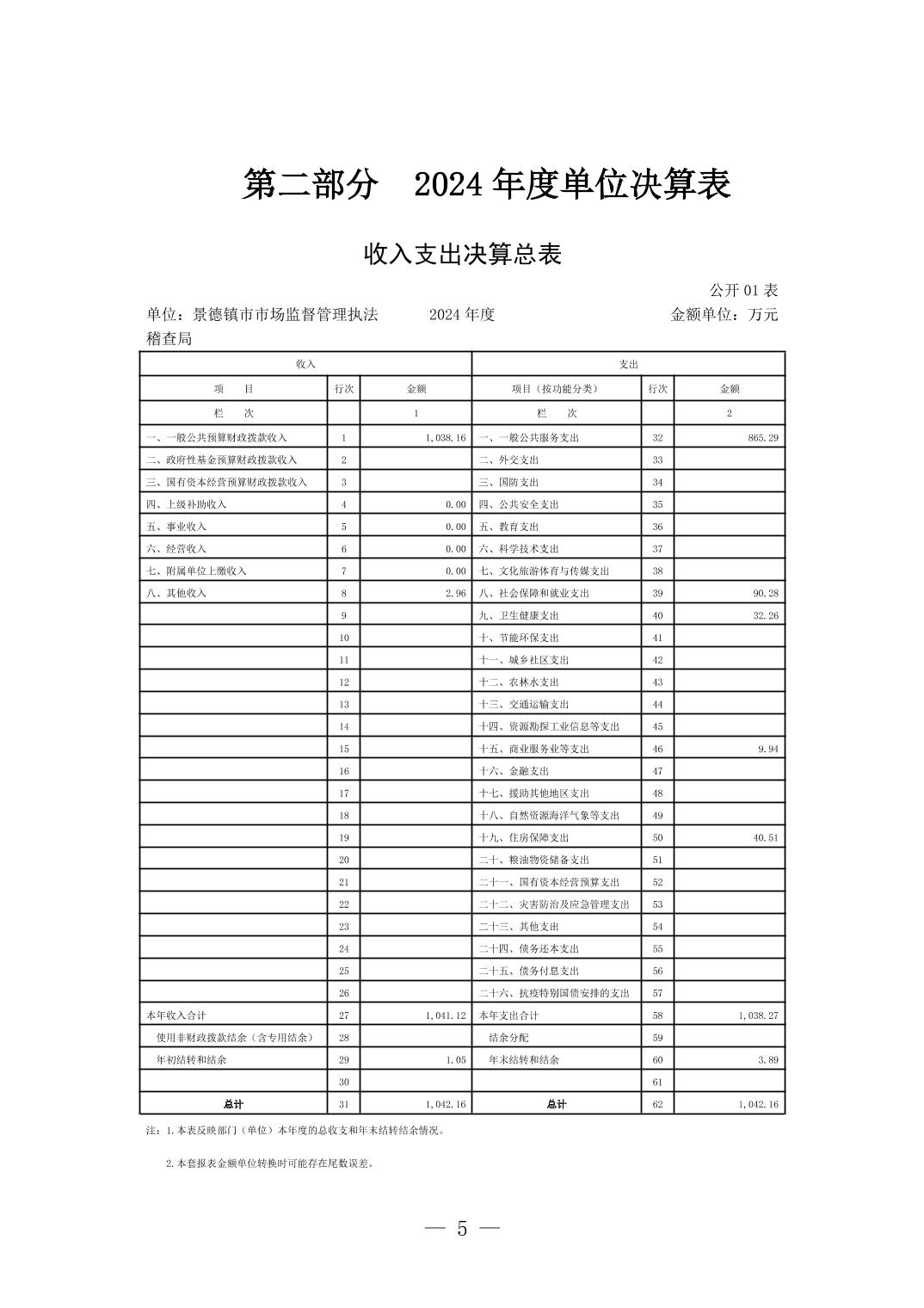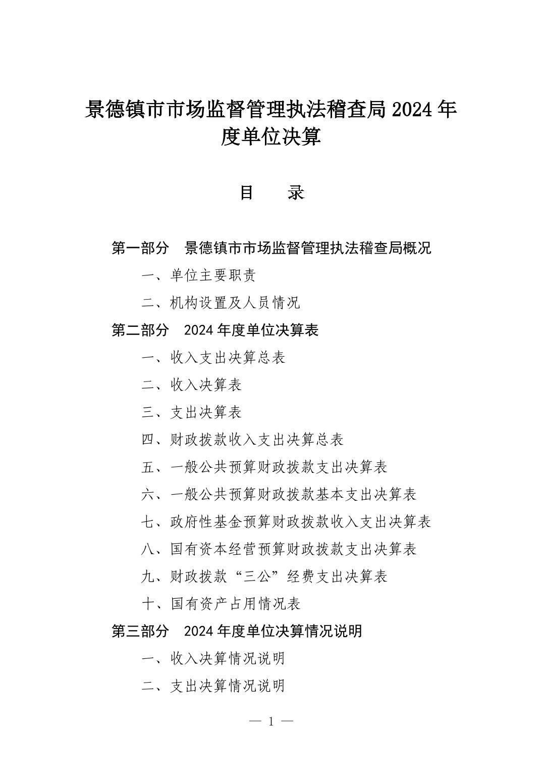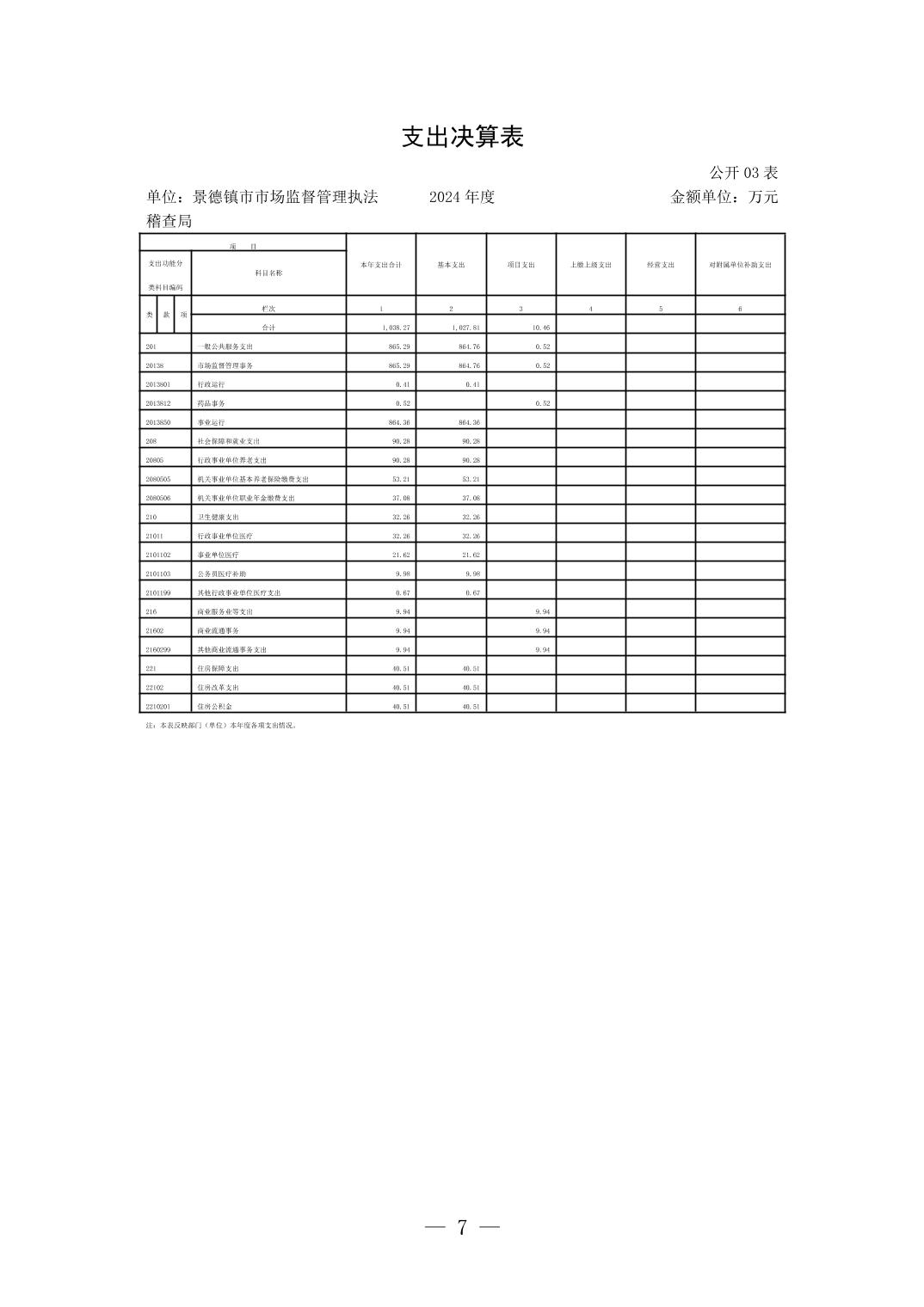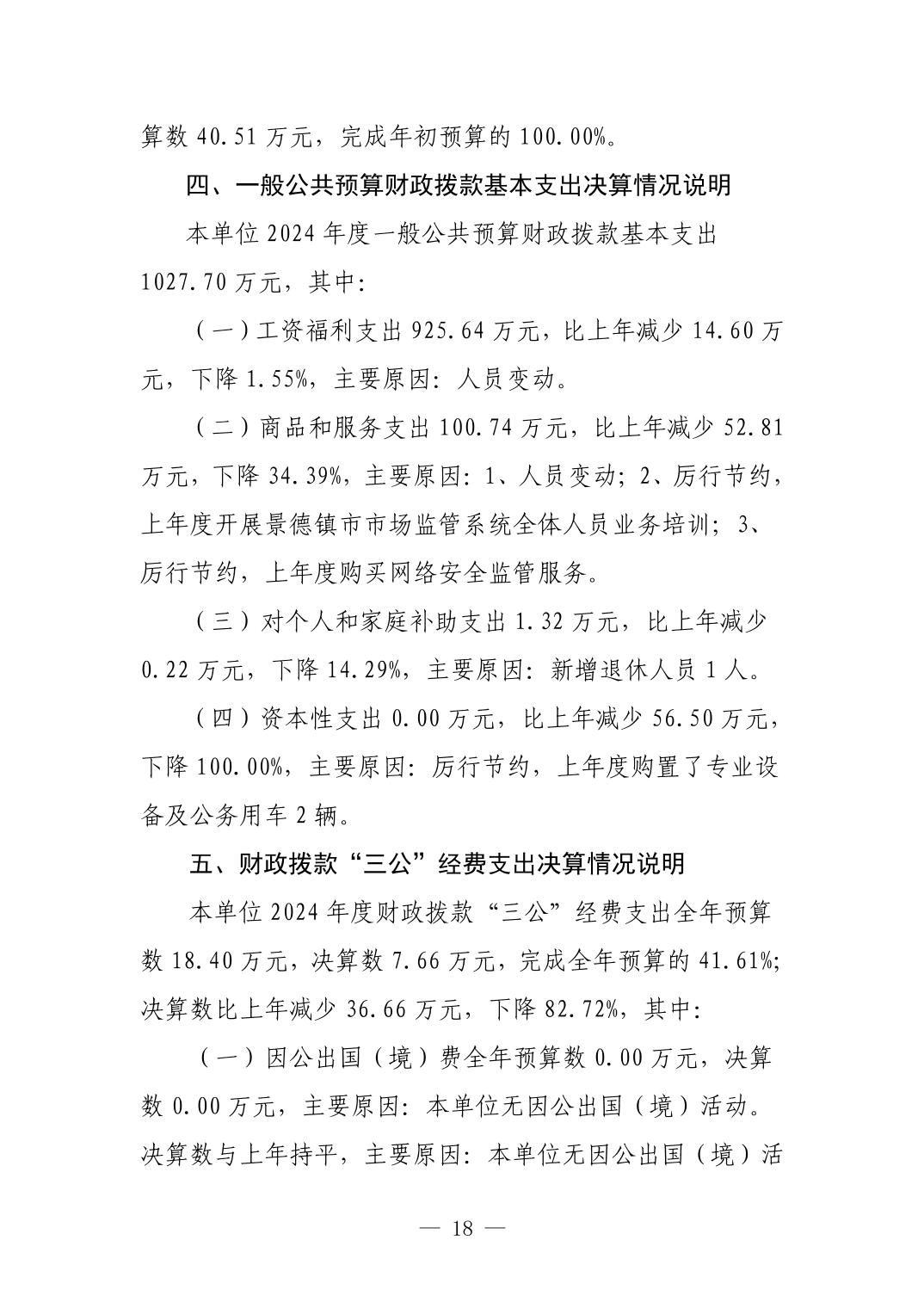 景德镇市市场监督管理执法稽查局2024年单位决算