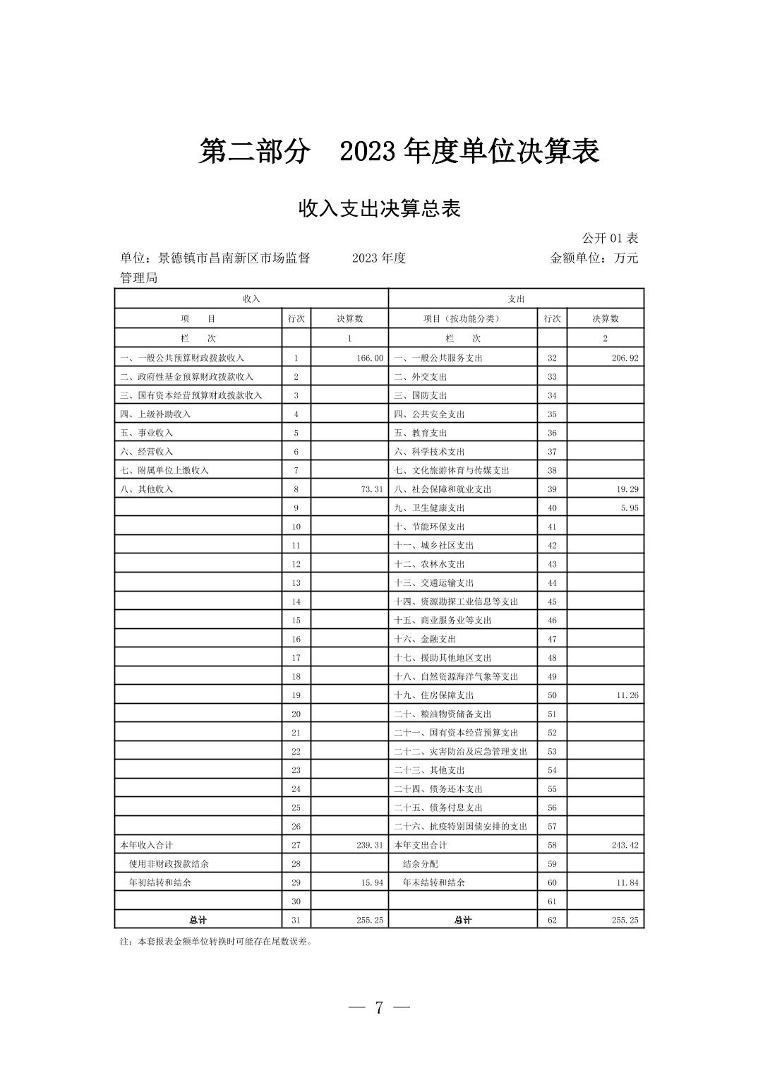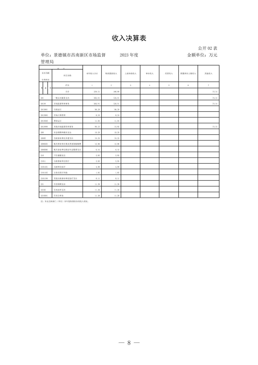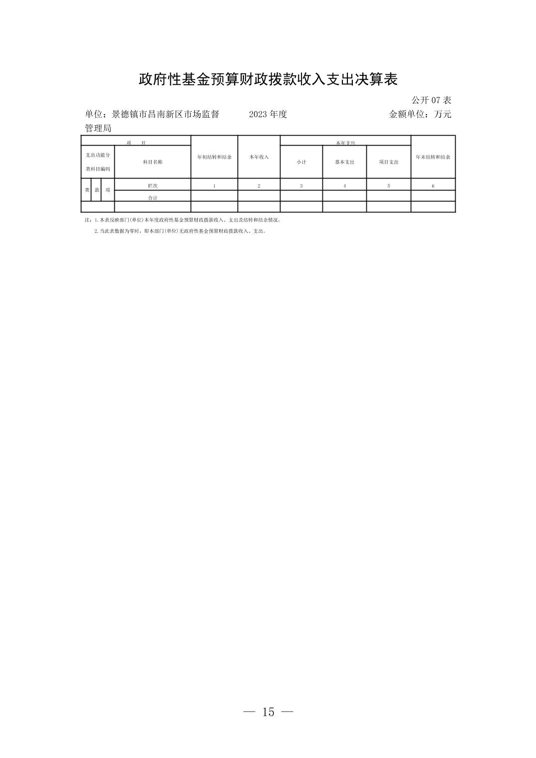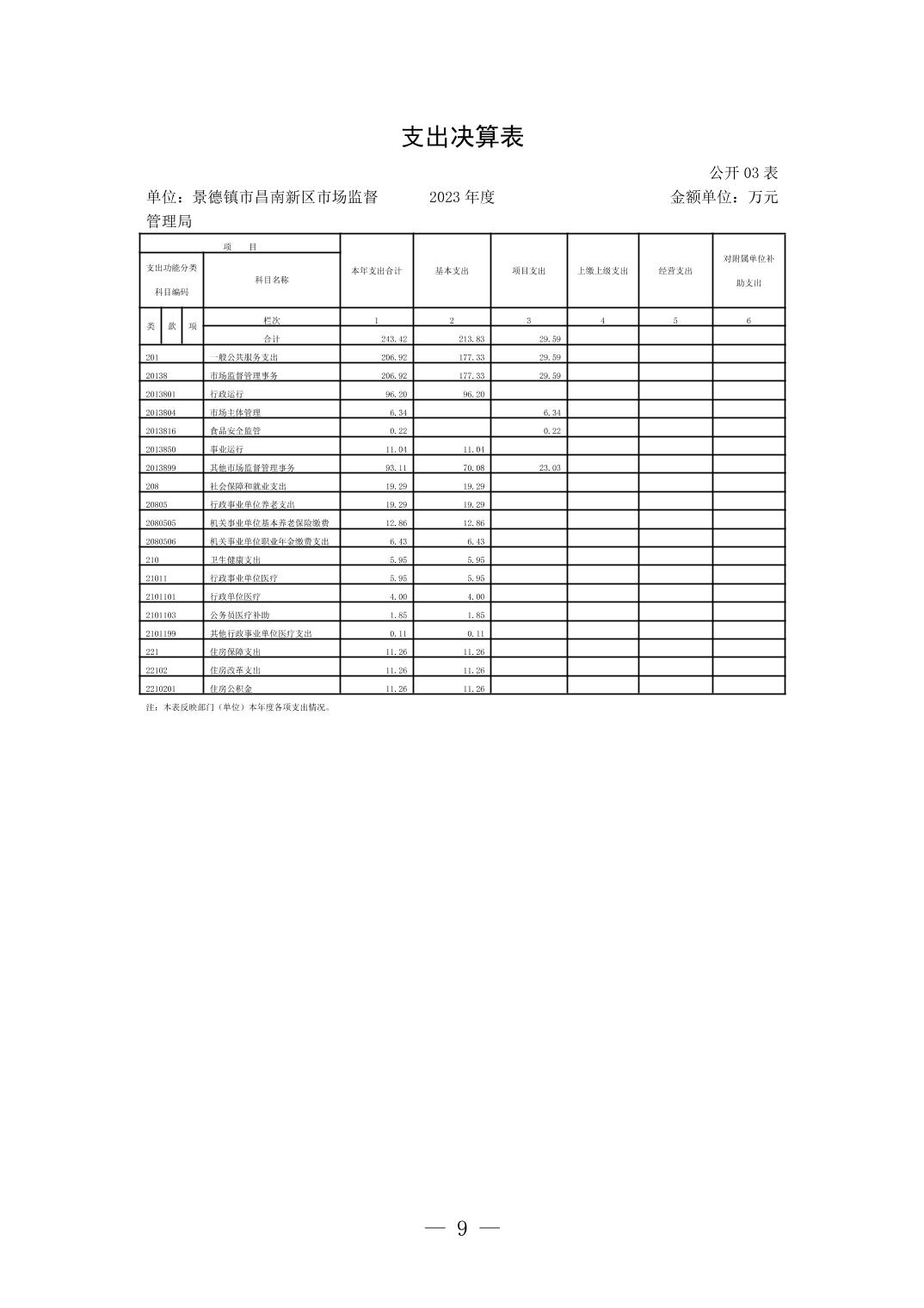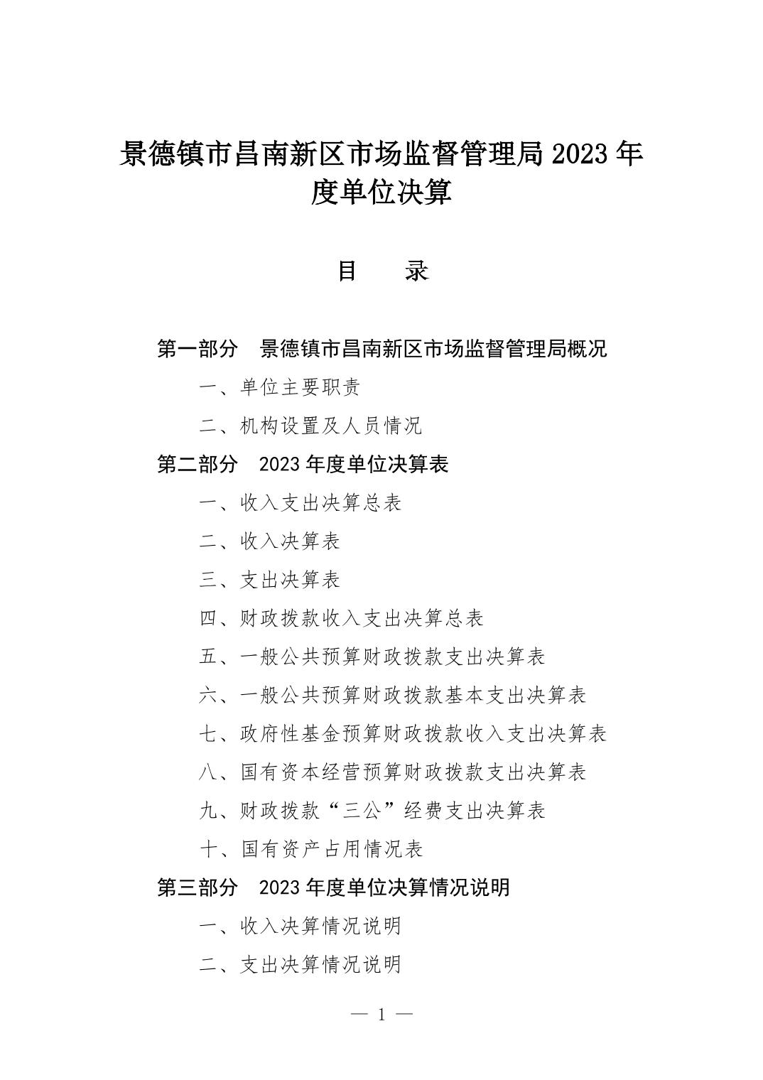 景德镇市昌南新区市场监督管理局2023年单位决算
