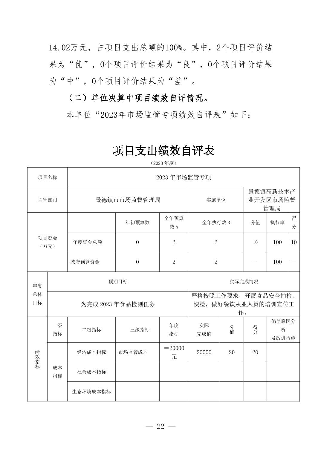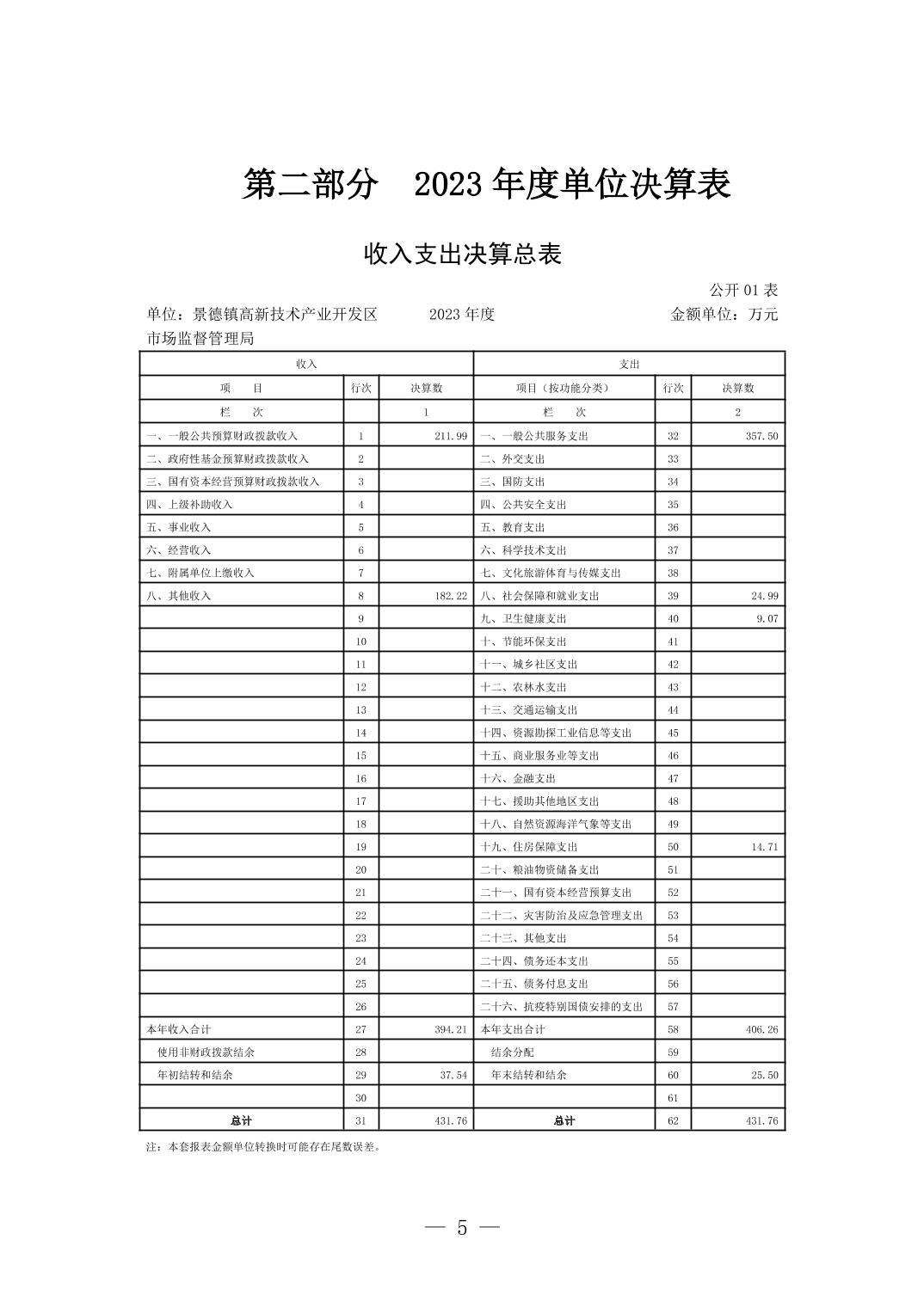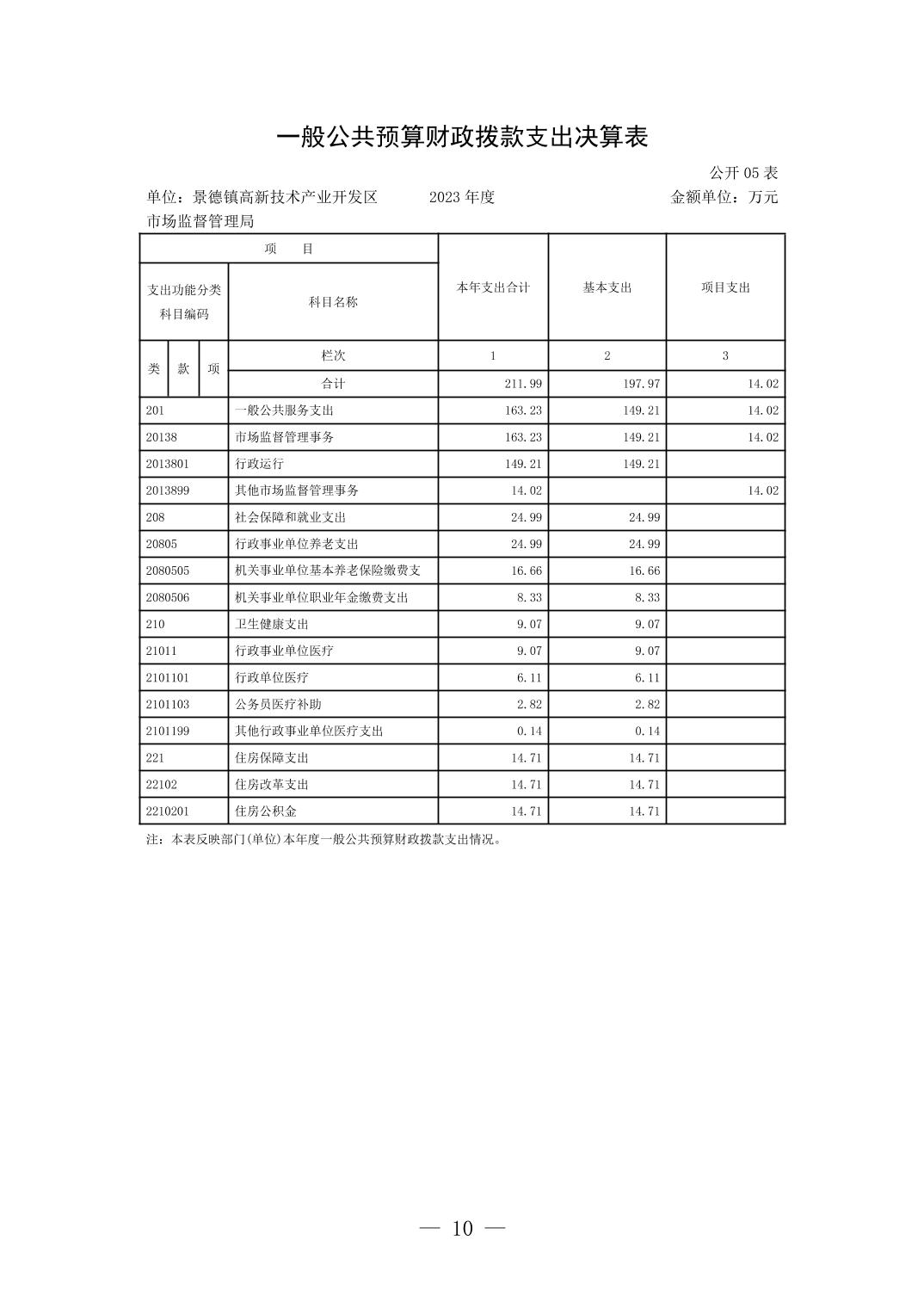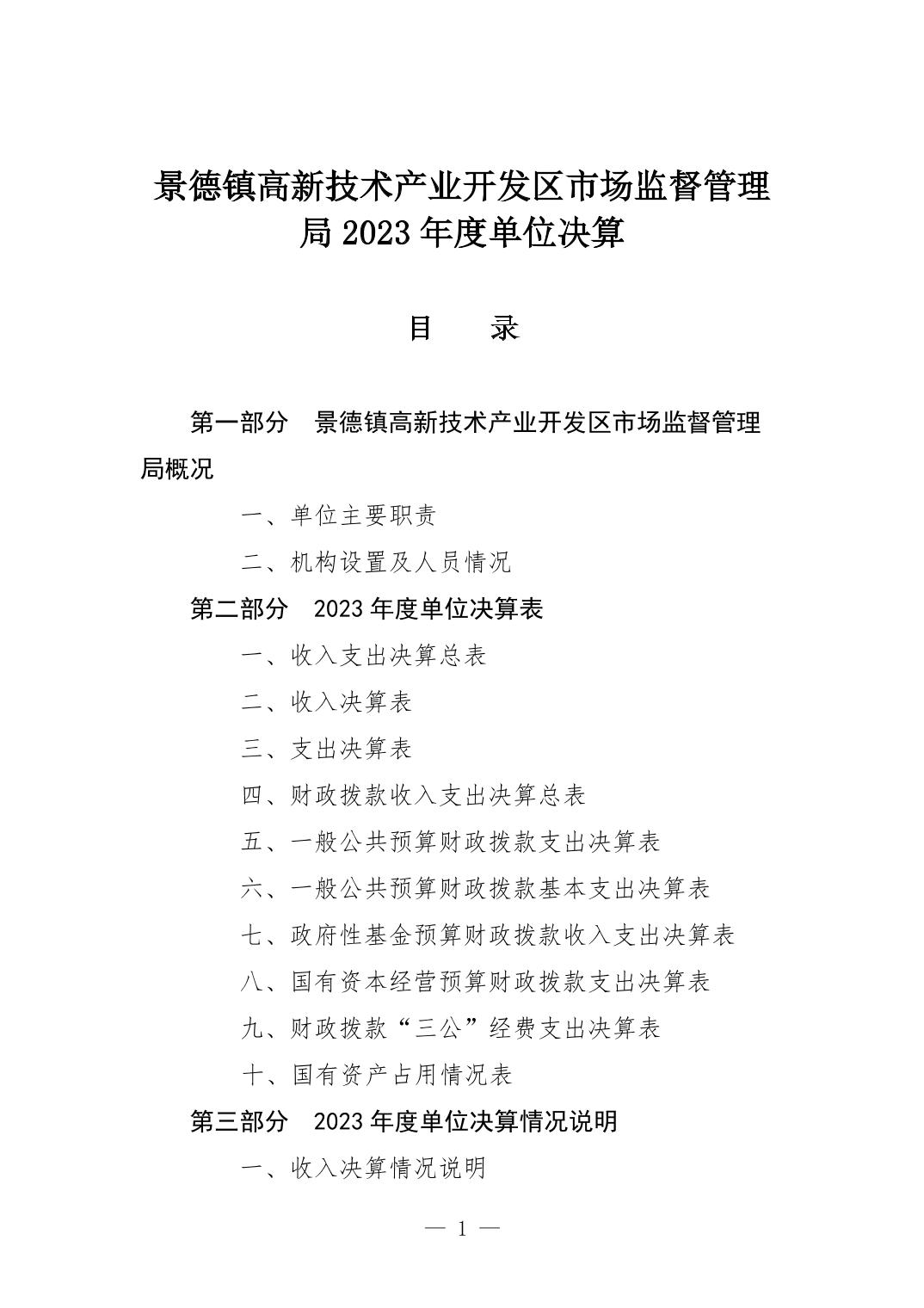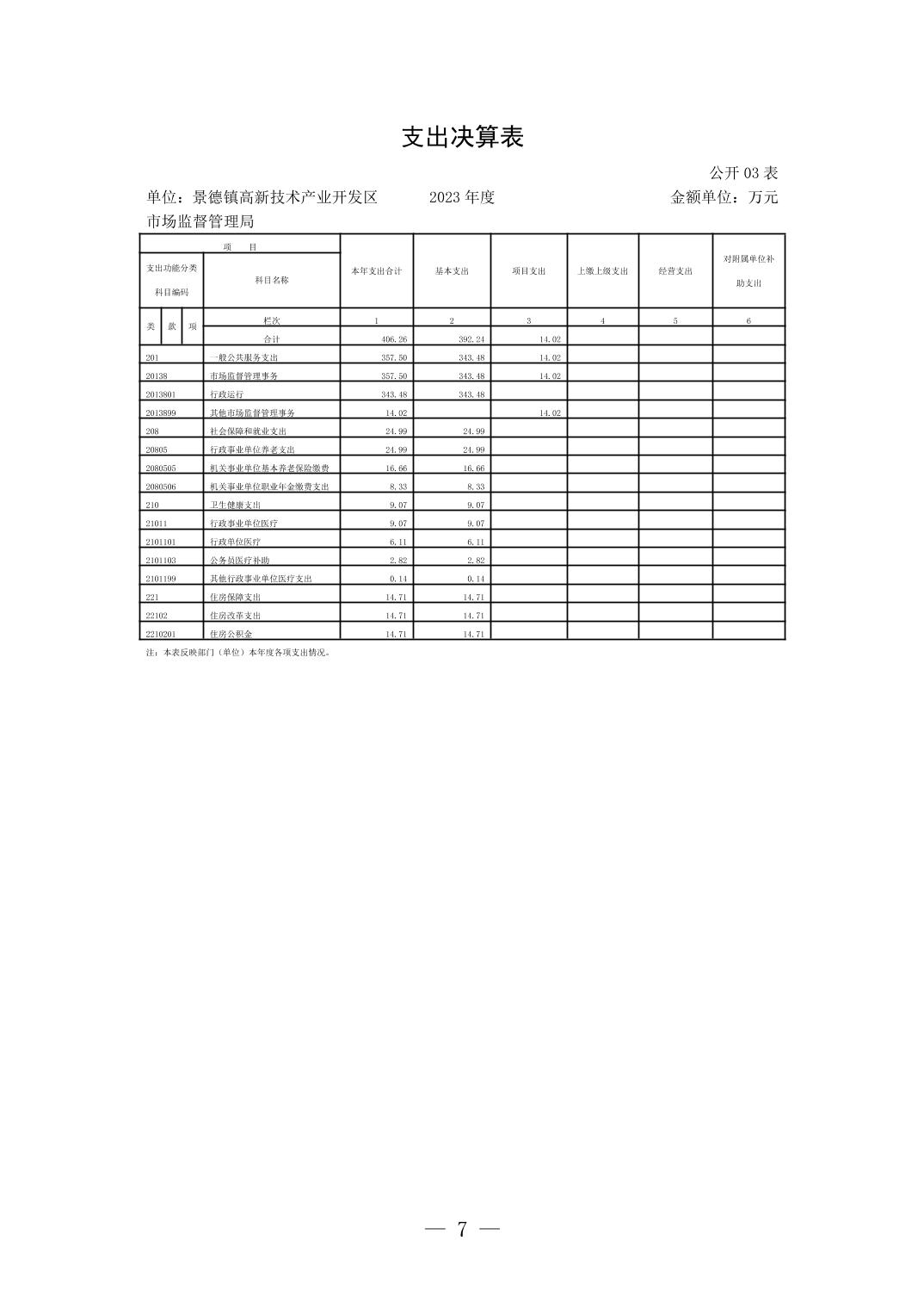 景德镇高新技术产业开发区市场监督管理局2023年单位决算