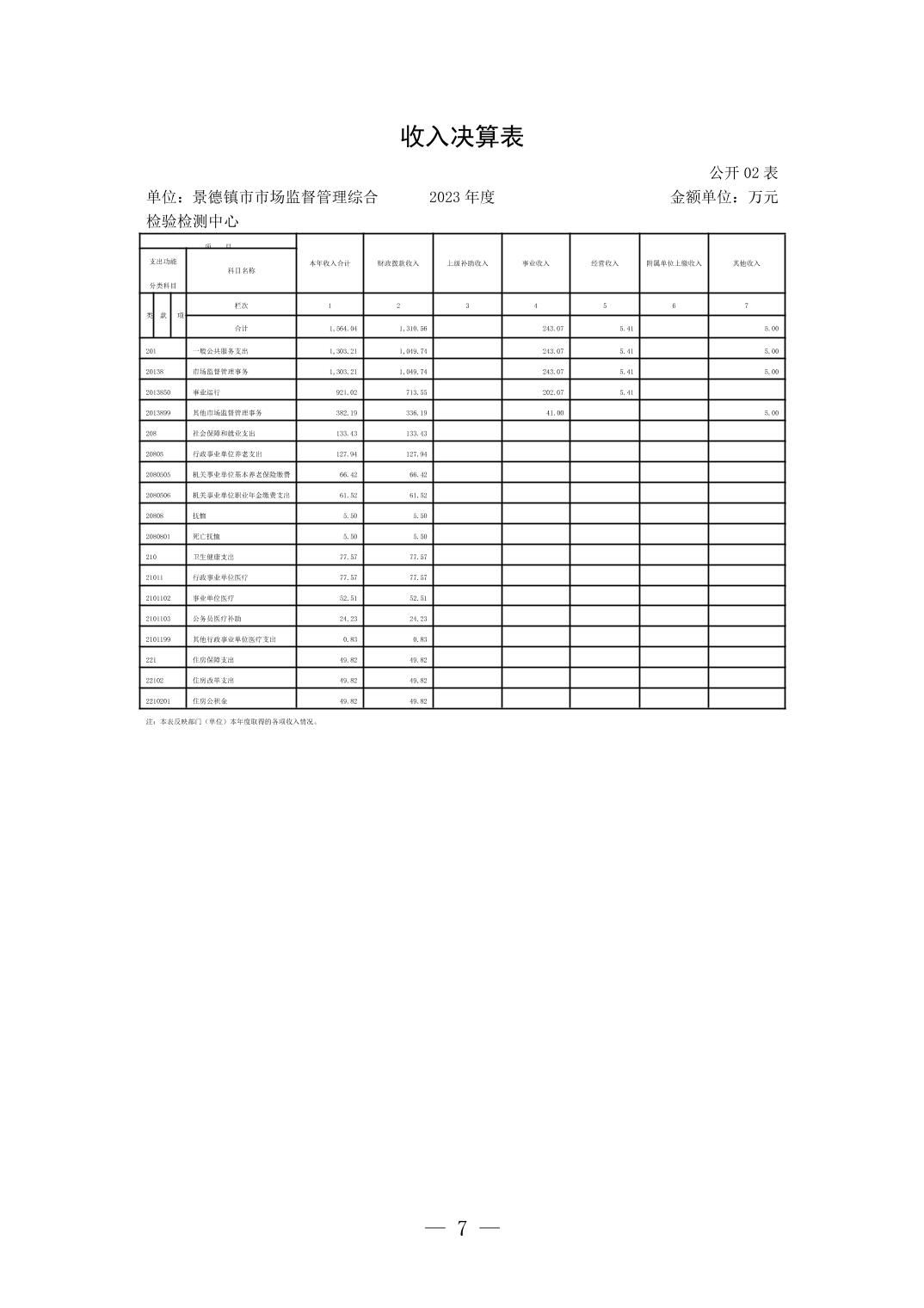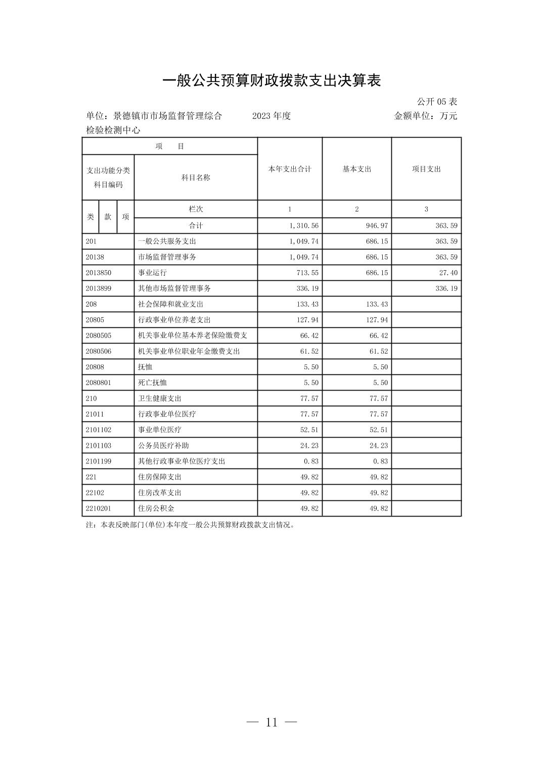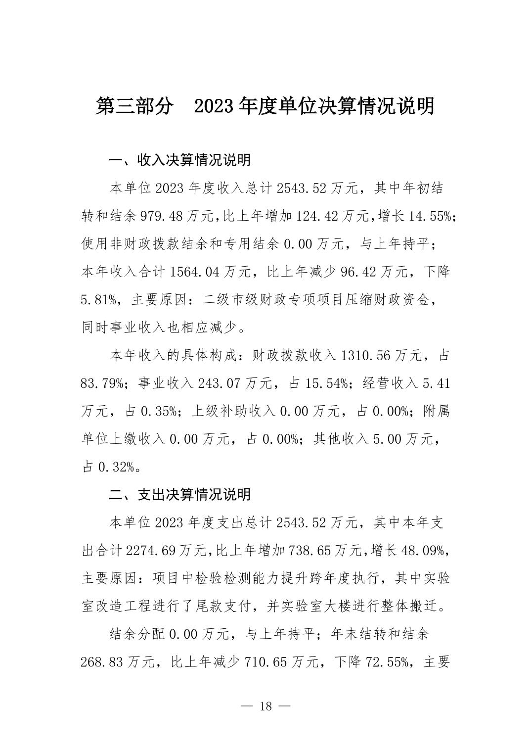 景德镇市市场监督管理综合检验检测中心2023年单位决算