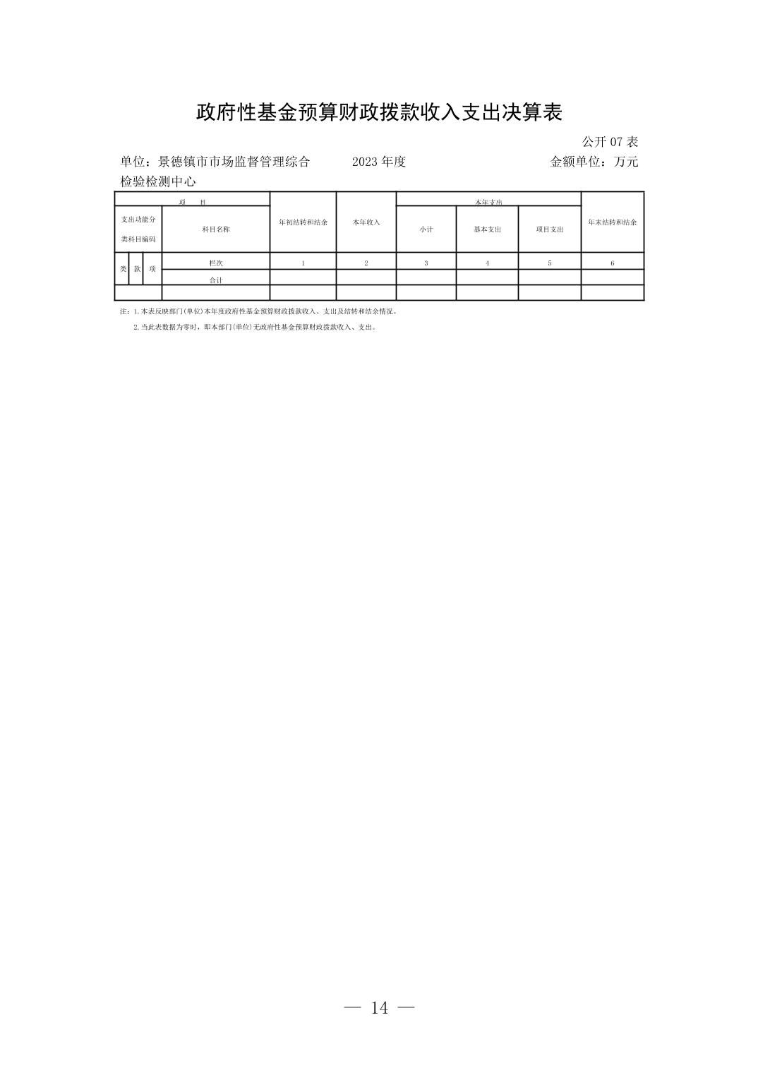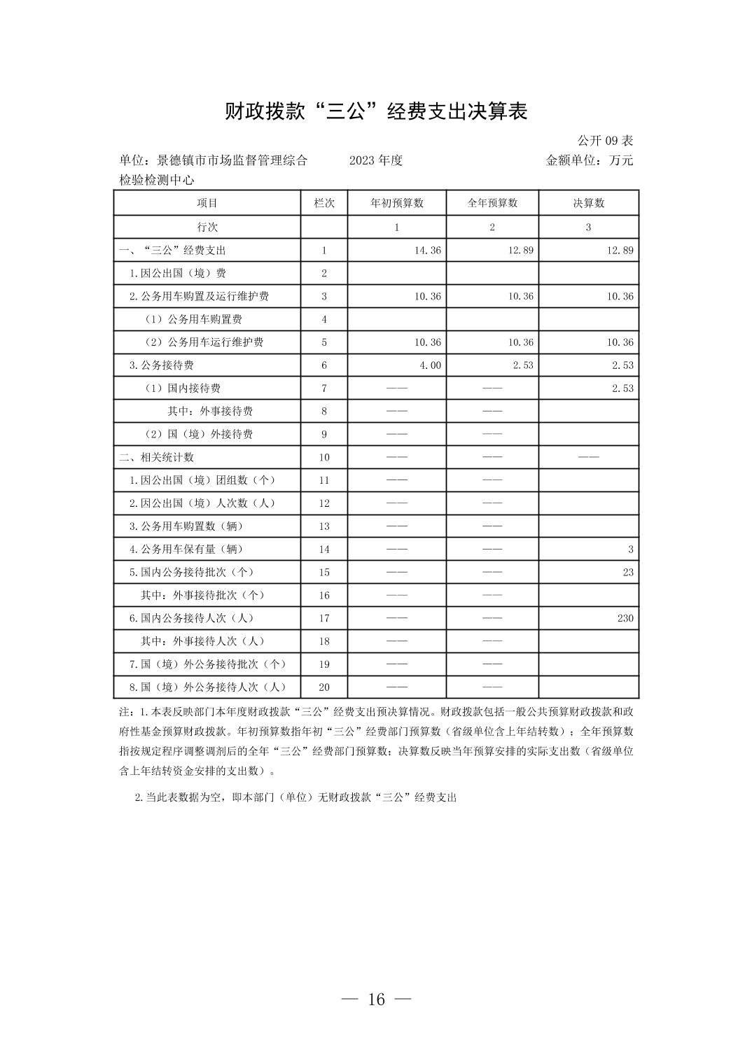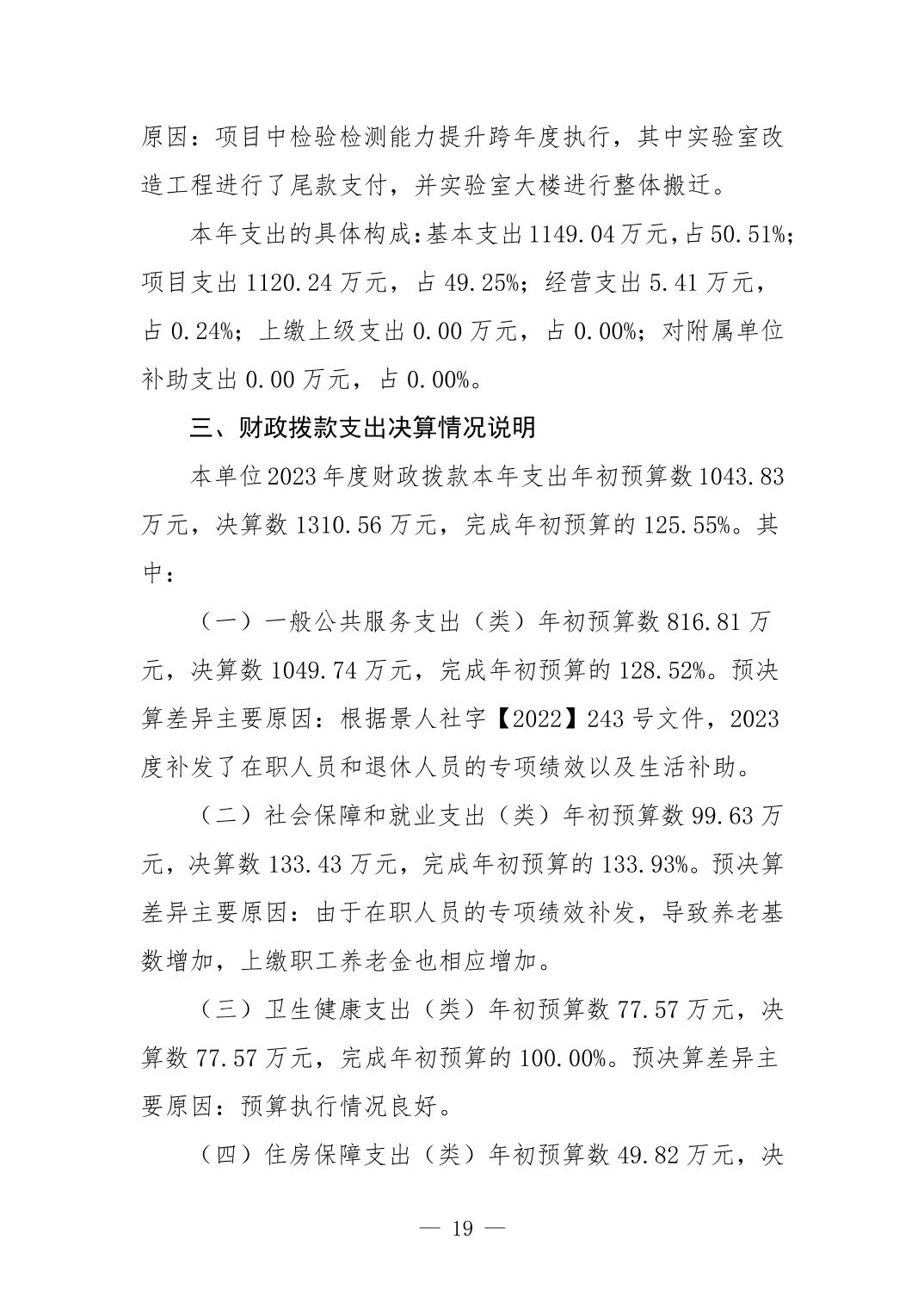 景德镇市市场监督管理综合检验检测中心2023年单位决算