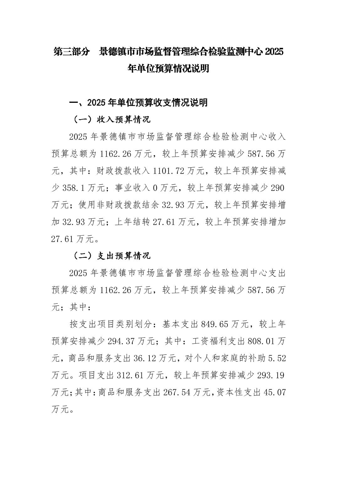 景德镇市市场监督管理综合检验检测中心2025年单位预算公开