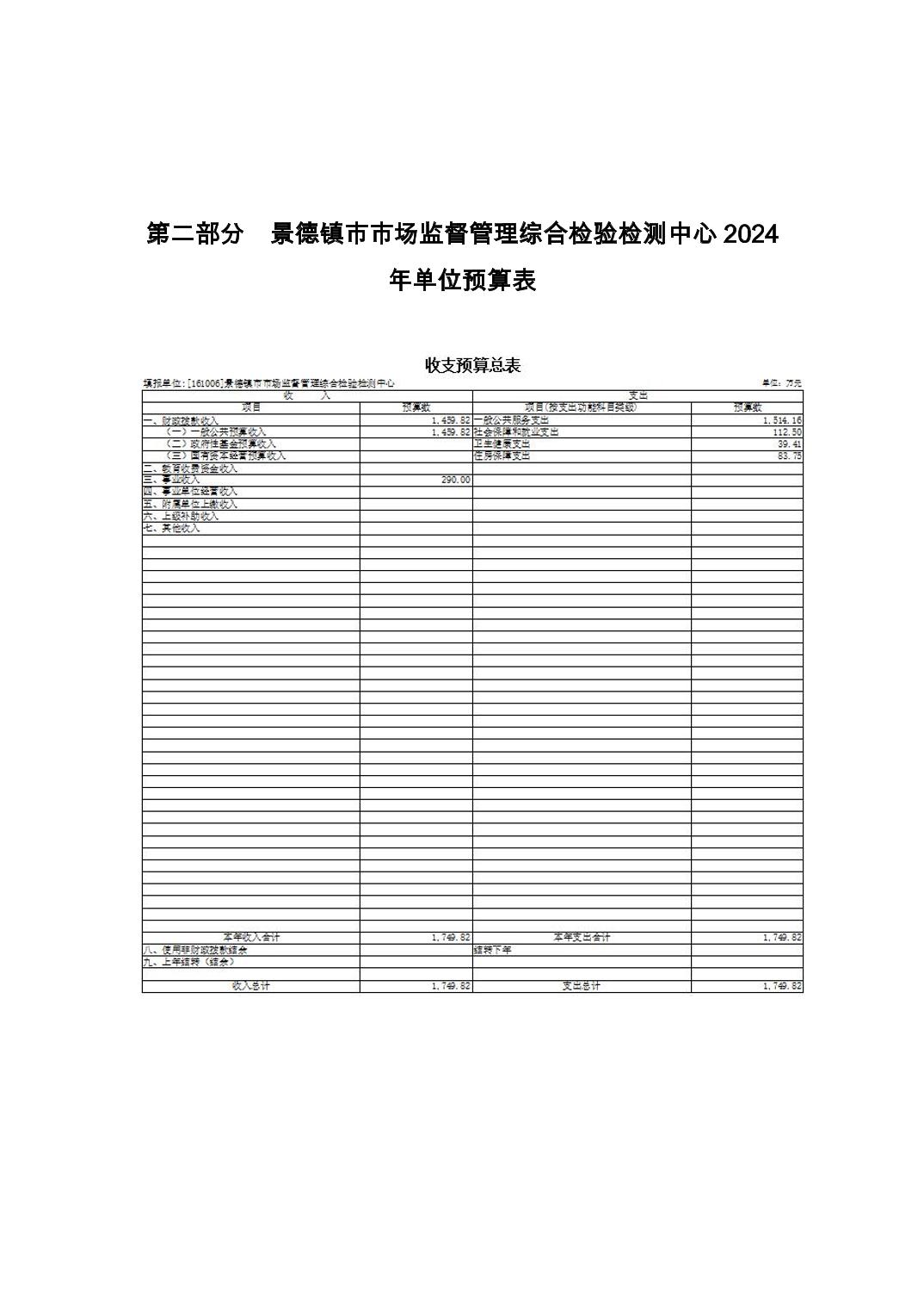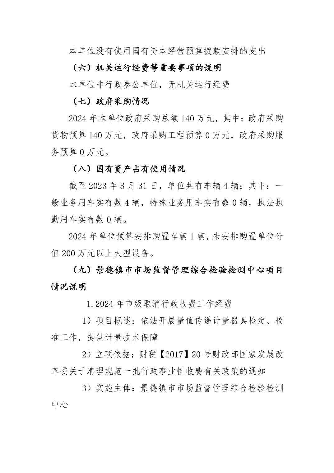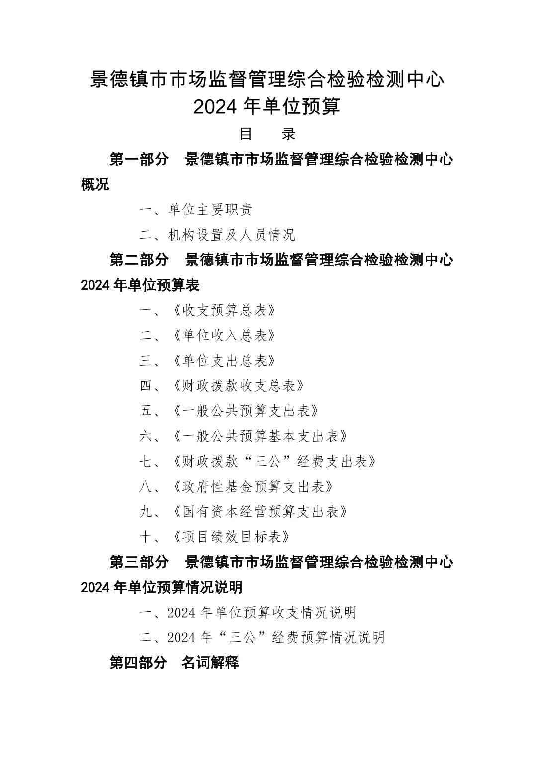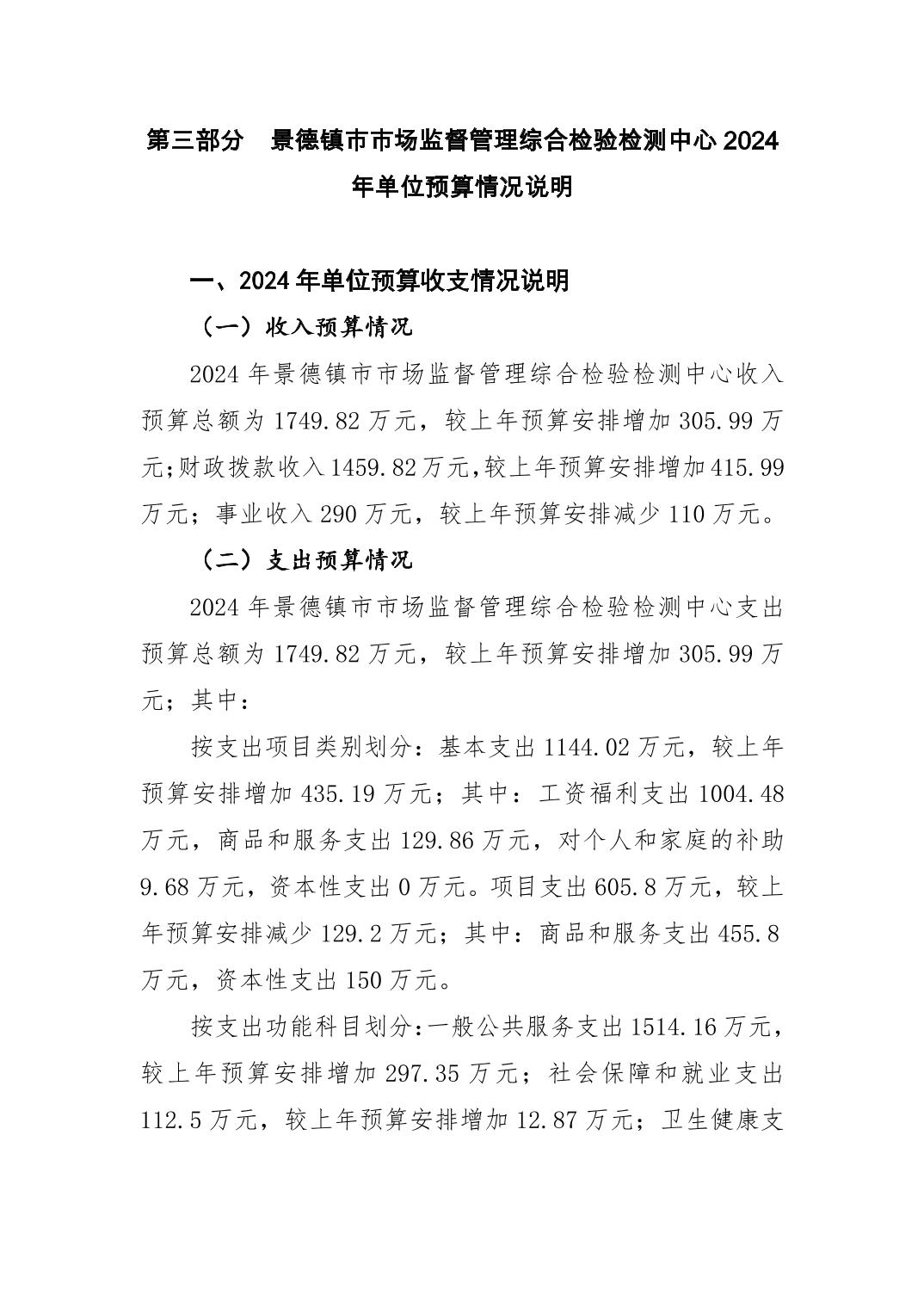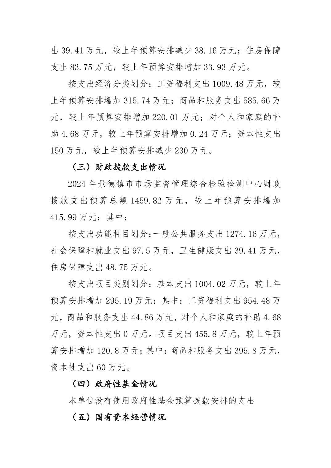 景德镇市市场监督管理综合检验检测中心2024年单位预算