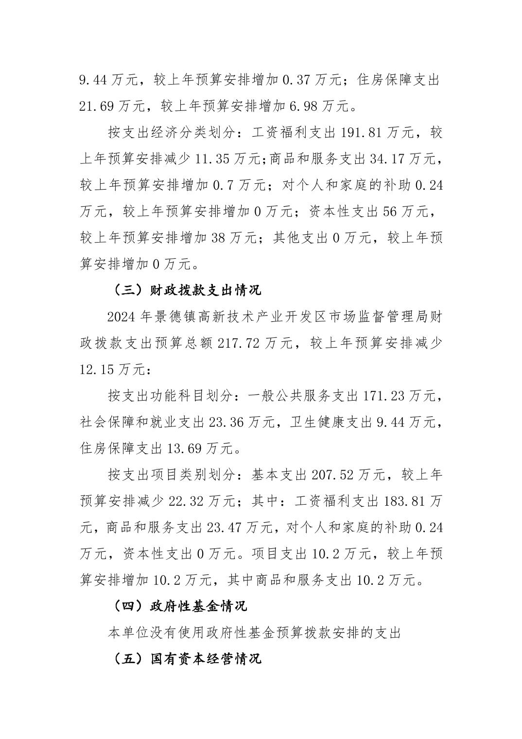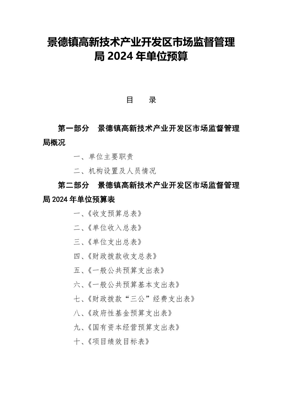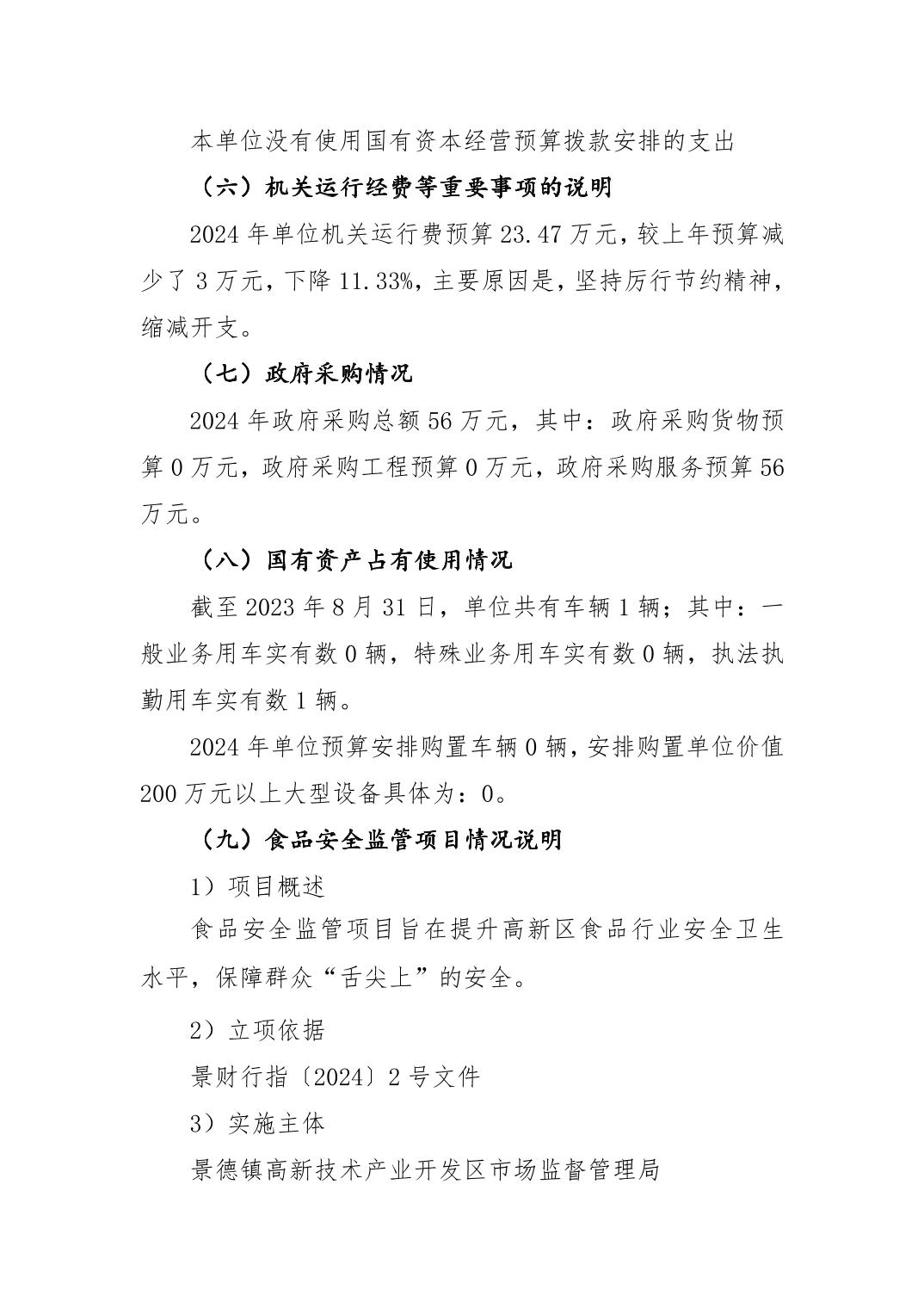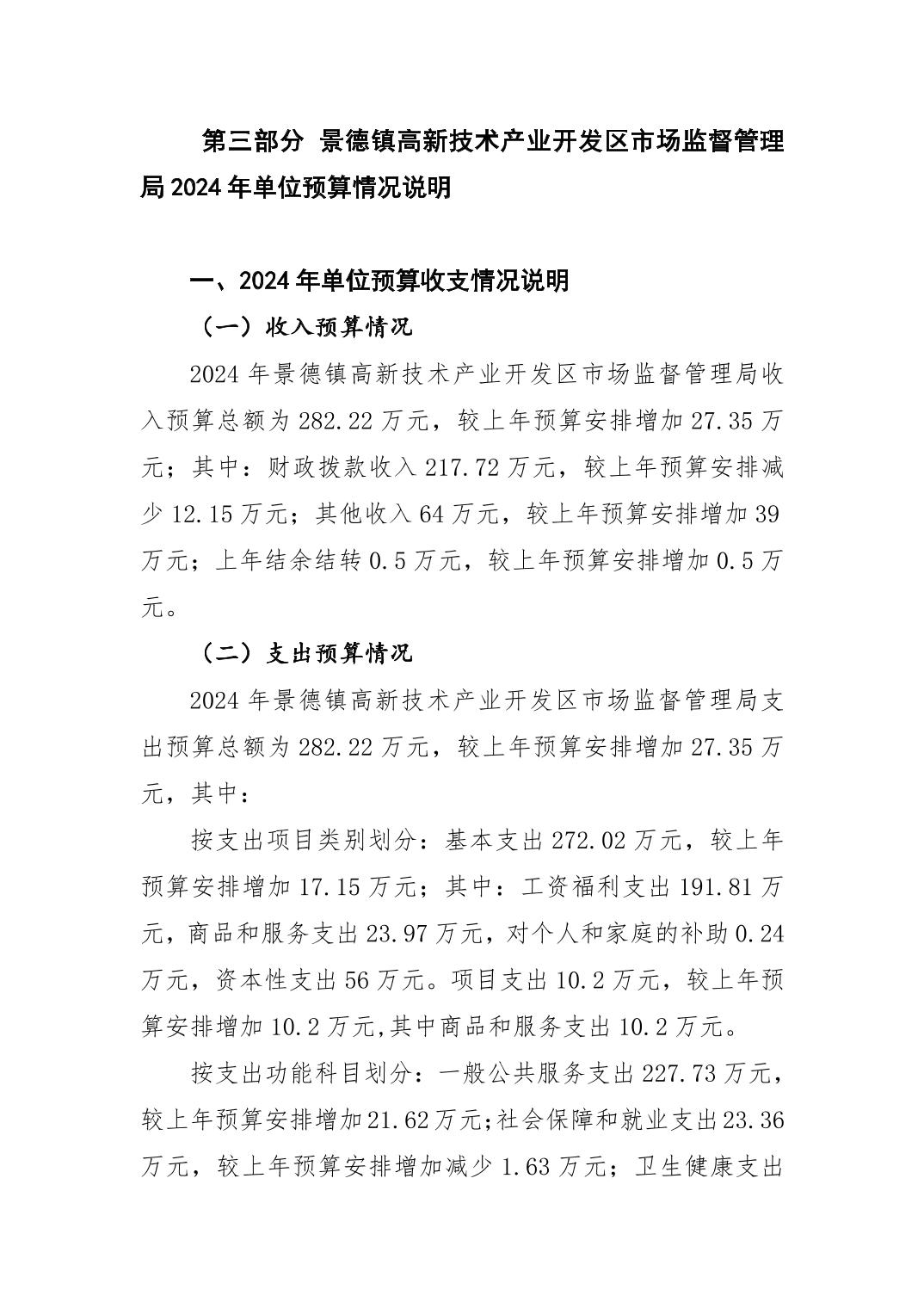 景德镇高新区市场监督管理局2024年单位预算