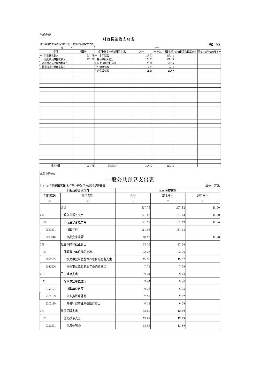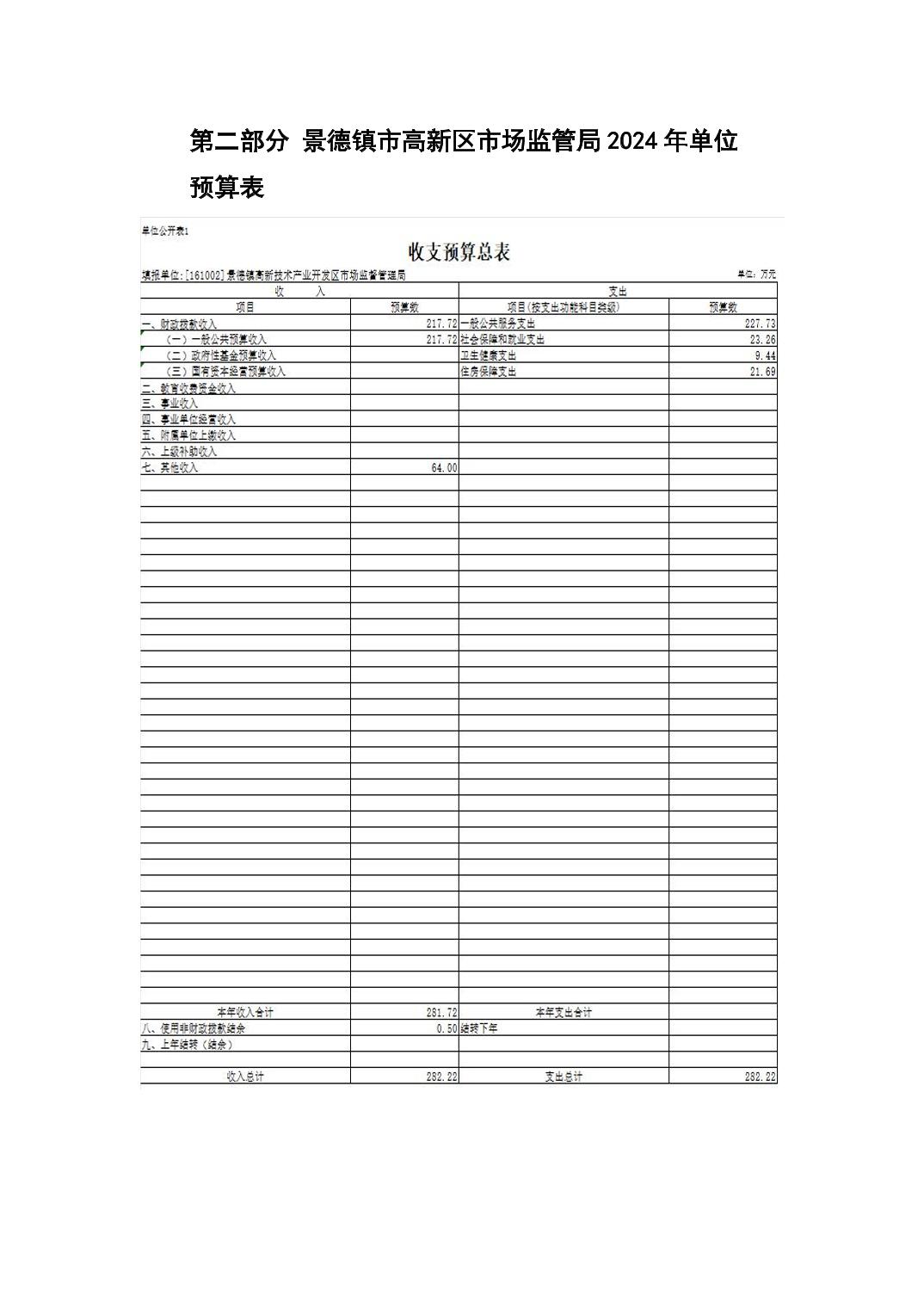 景德镇高新技术产业开发区市场监督管理局2024年预算公开表.xls