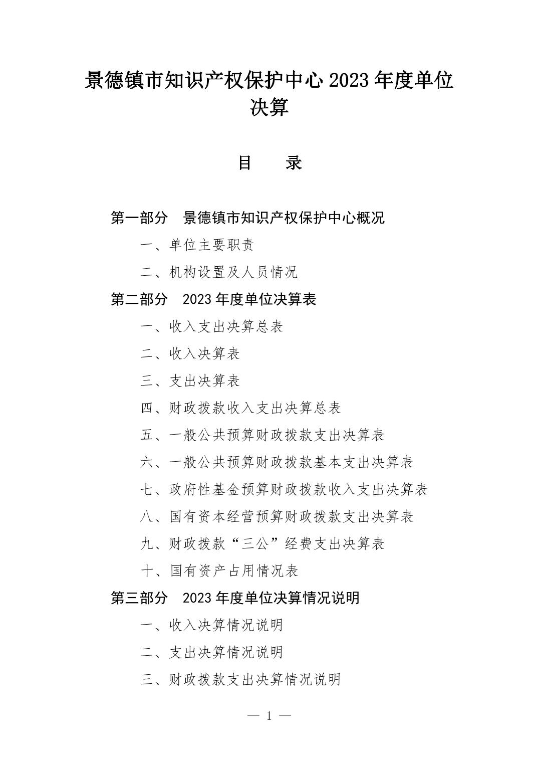 景德镇市知识产权保护中心2023年单位决算
