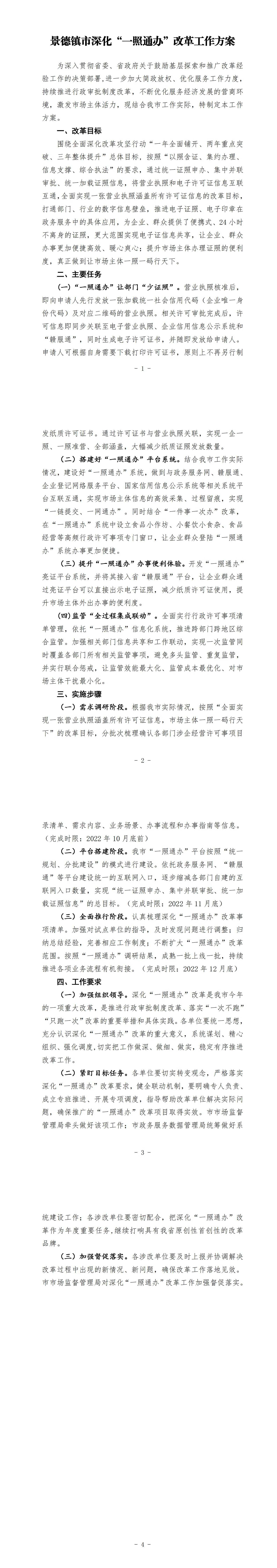 【行政规范性文件】景德镇市深化“一照通办”改革工作方案