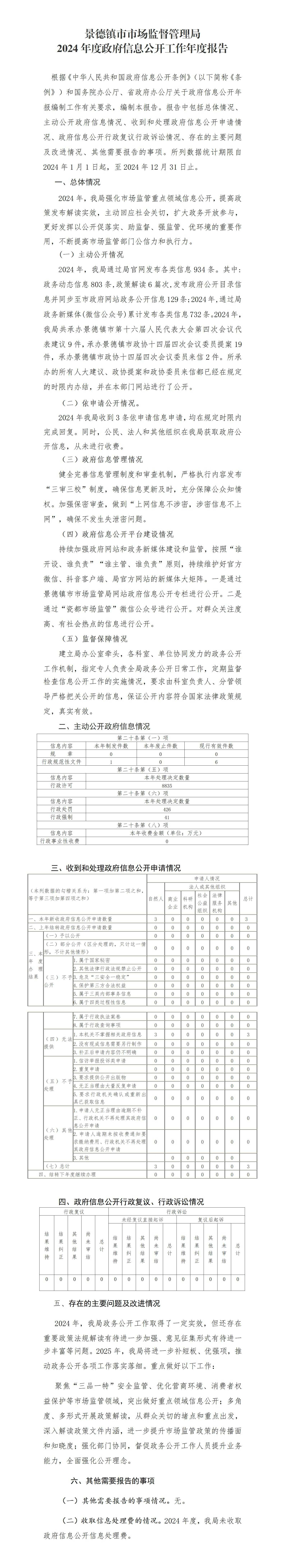 景德镇市市场监督管理局2024年度政府信息公开工作年度报告