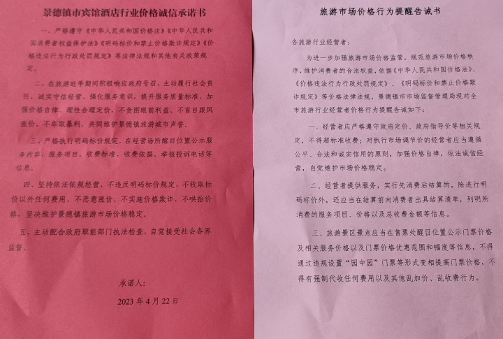 城区42家酒店经营者现场签订价格诚信承诺书,向社会作出公开承诺,包括遵守法律法规和相关政策规定,明码标价、诚信经营,理性合理定价,不盲目跟风涨价,不超标收费,坚持依法依规经营,自觉接受社会监督等。