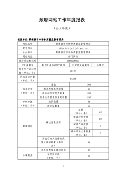 景德镇市市场和质量监督管理局2017年度政府网站工作年度报表