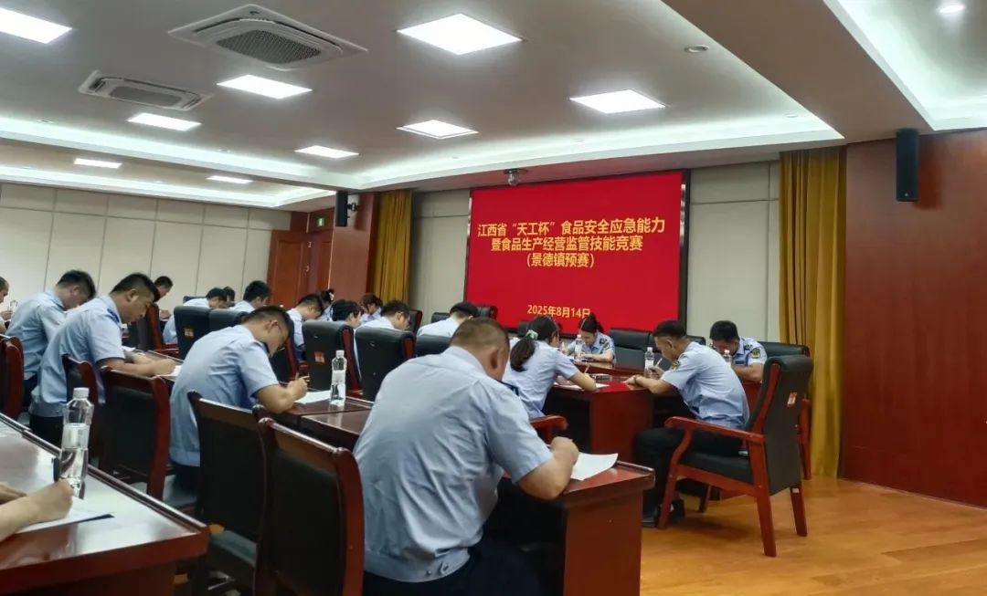 为加强我市食品行业高技能、高素质人才队伍建设,提升我市食品安全监管能力和保障水平,8月14日下午,景德镇市市场监管局举办2025年江西省“天工杯”食品安全应急能力暨食品生产经营监管技能竞赛(景德镇市预赛),市局食品相关科室及各县(市、区)市场监管局共29名业务骨干参加比赛。