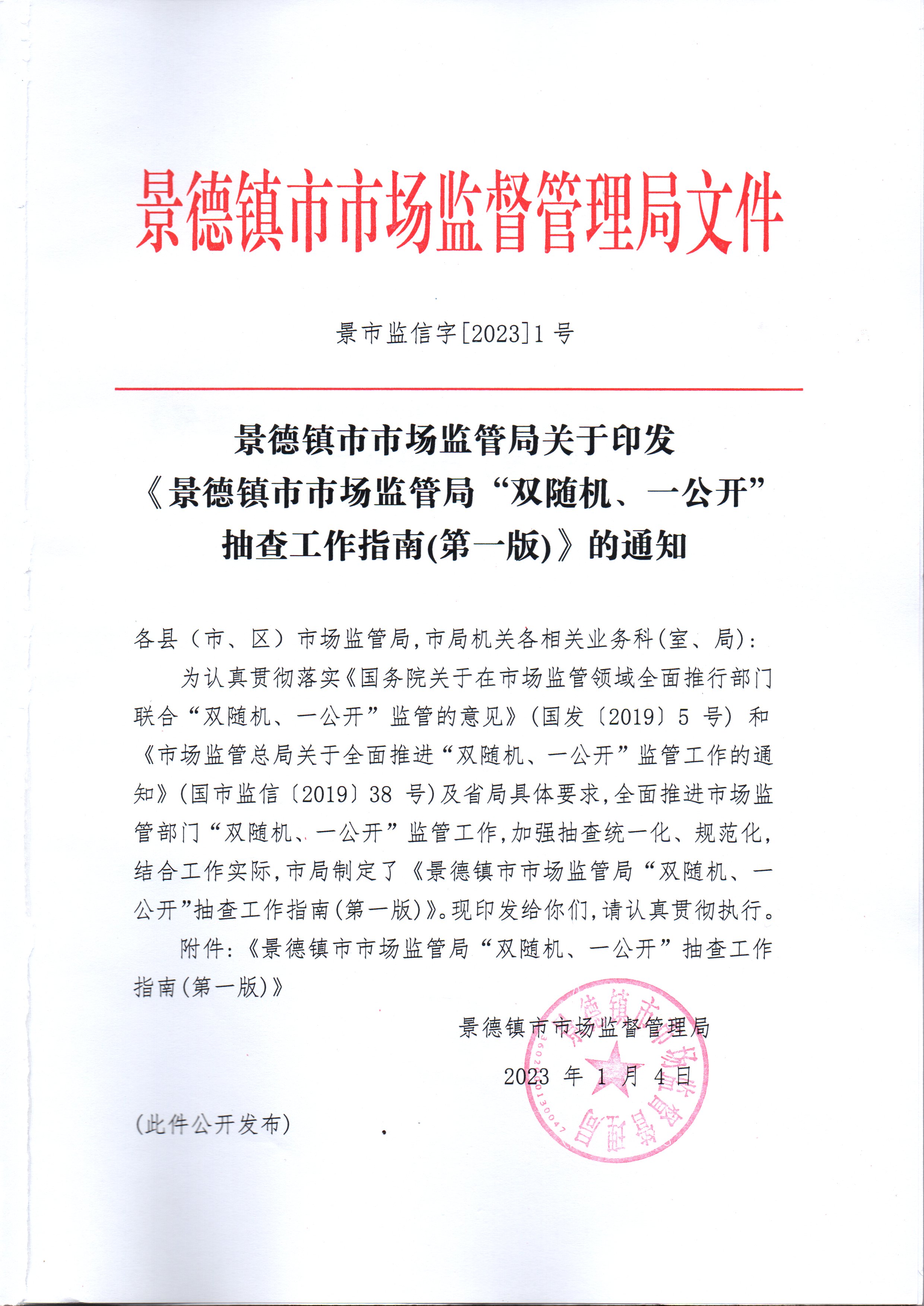 关于印发《景德镇市市场监管局“双随机、一公开”抽查工作指南(第一版)》的通知