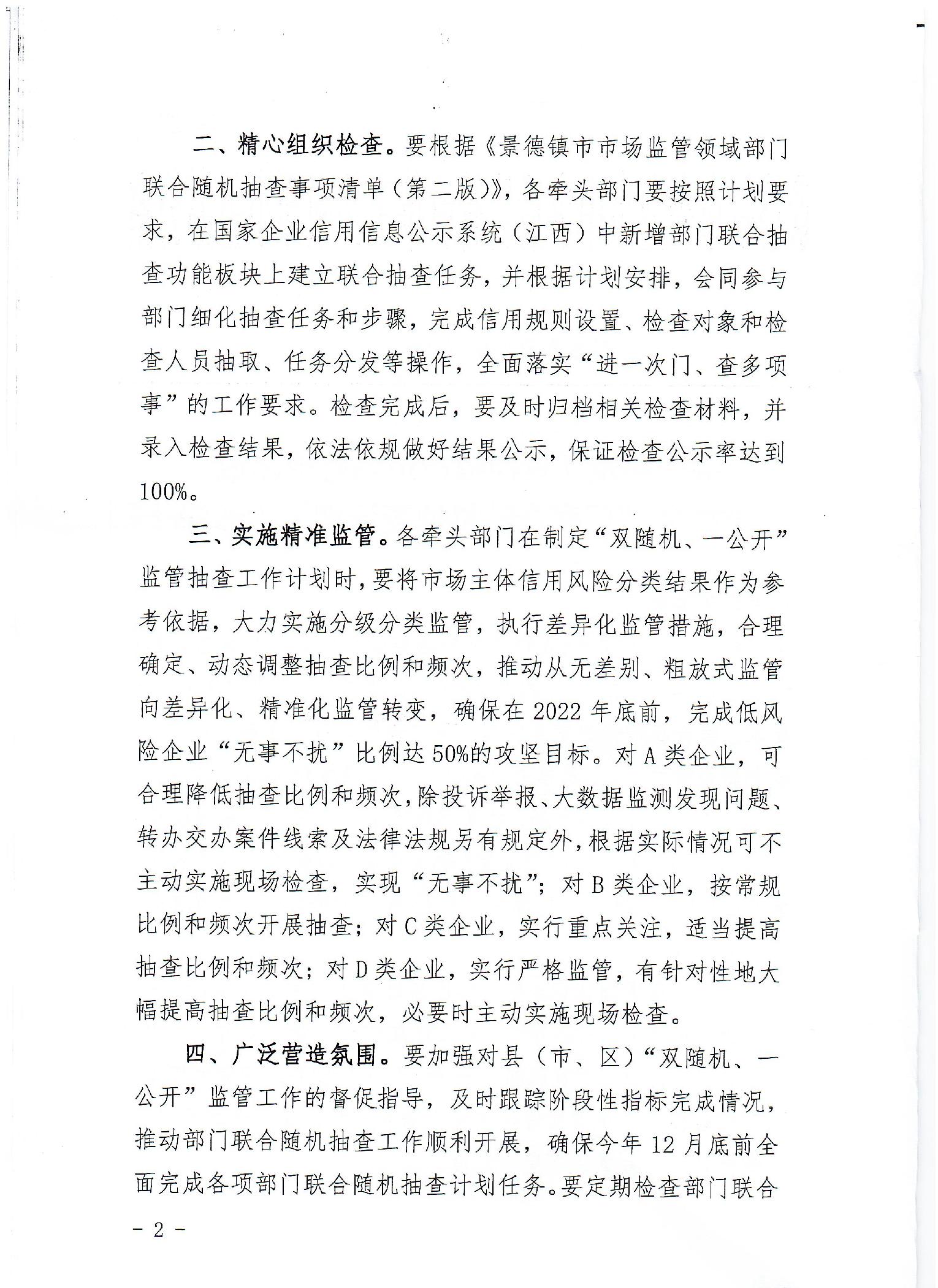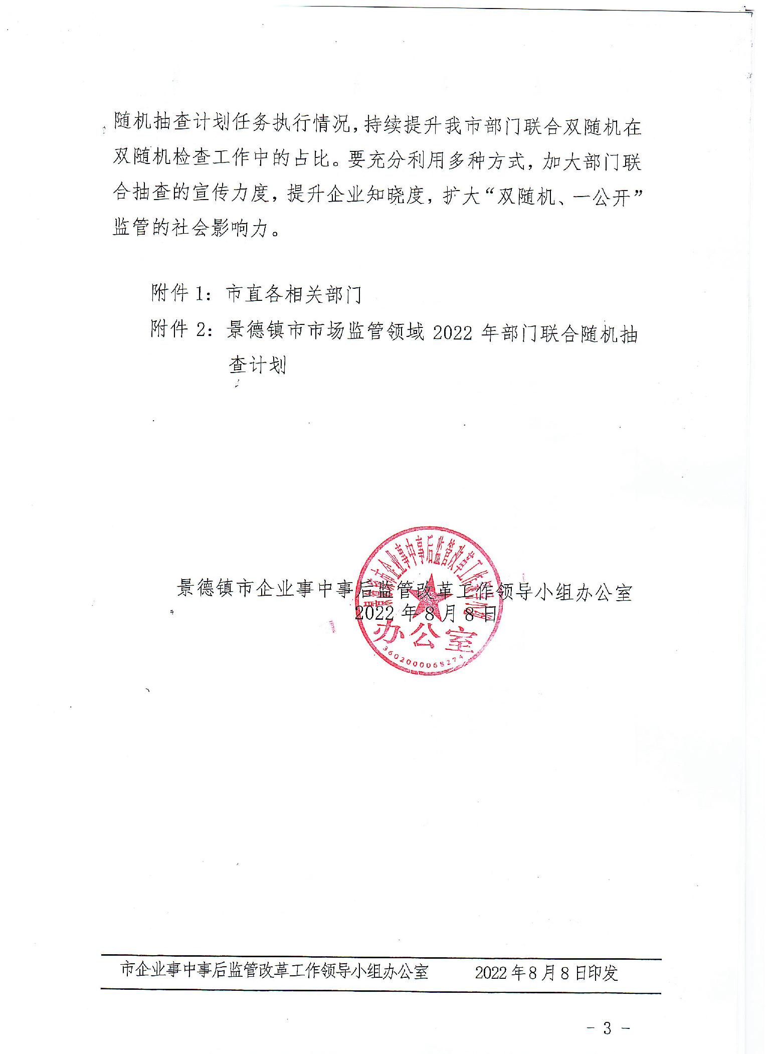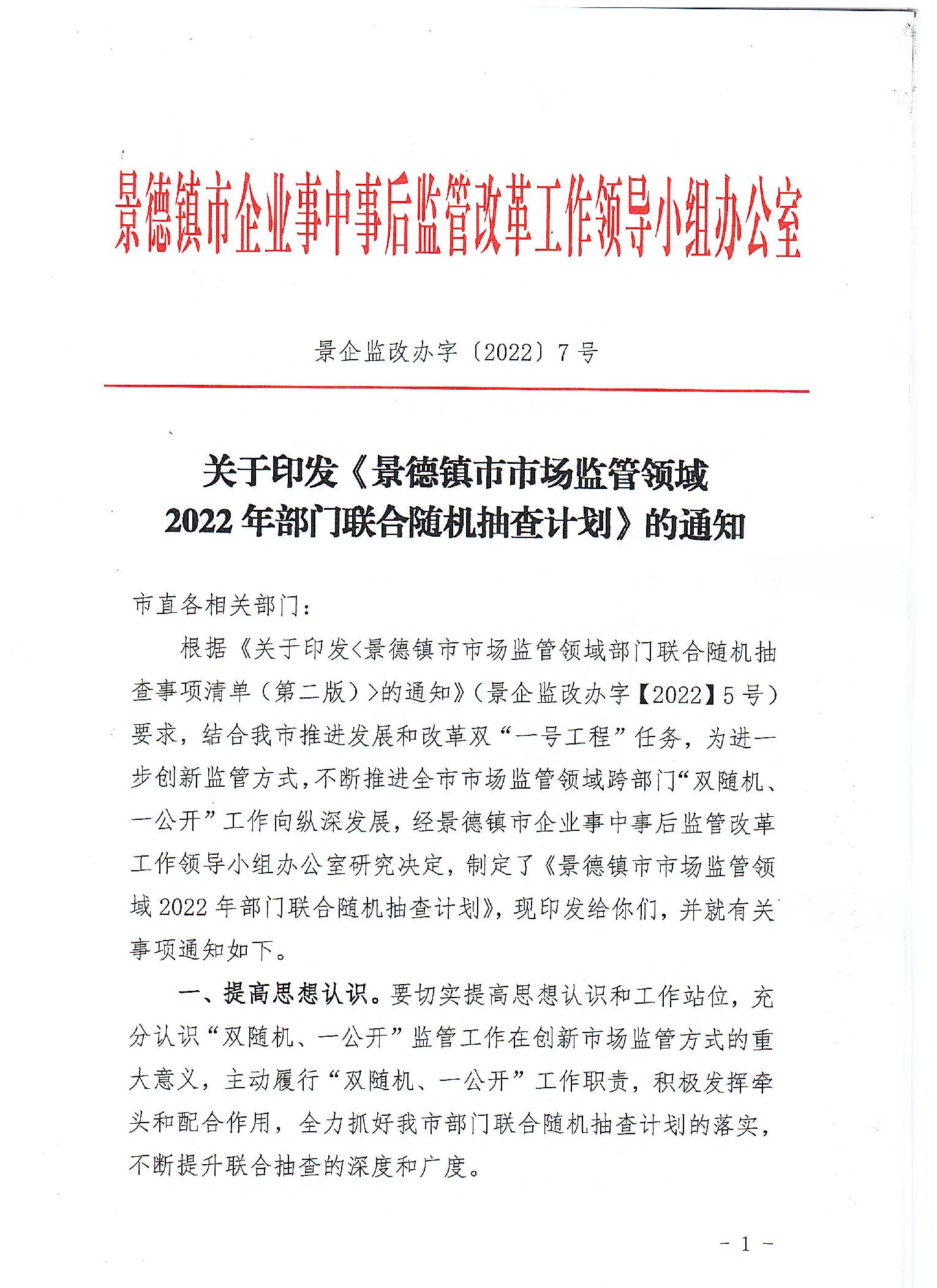 关于印发《景德镇市市场监管领域2022年部门联合随机抽查计划》的通知