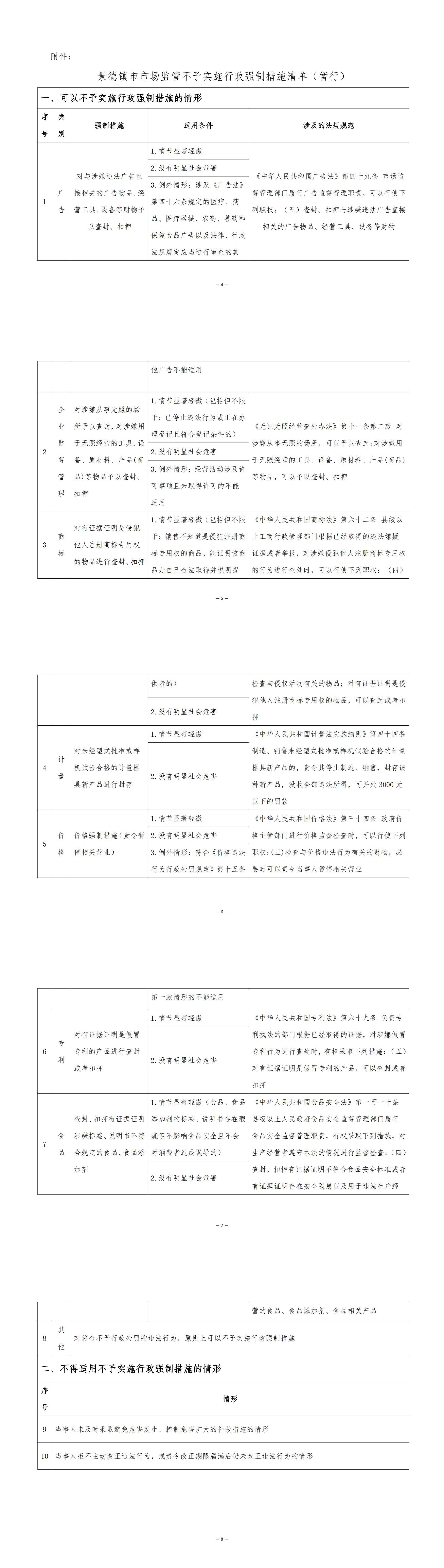 关于印发《景德镇市市场监管不予实施行政强制措施清单(暂行)》的通知.doc