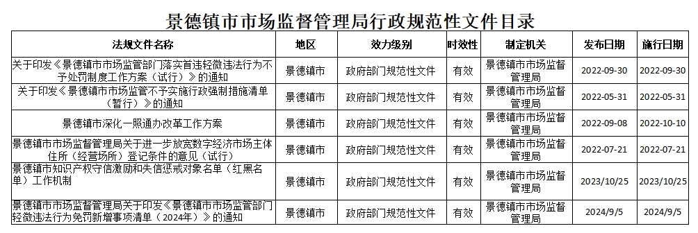 景德镇市市场监督管理局行政规范性文件目录及清理情况(2024年10月)