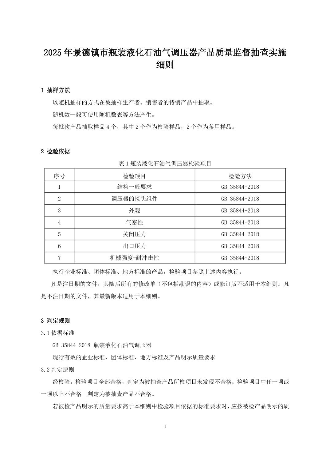 2025年景德镇市瓶装液化石油气调压器产品质量监督抽查实施细则