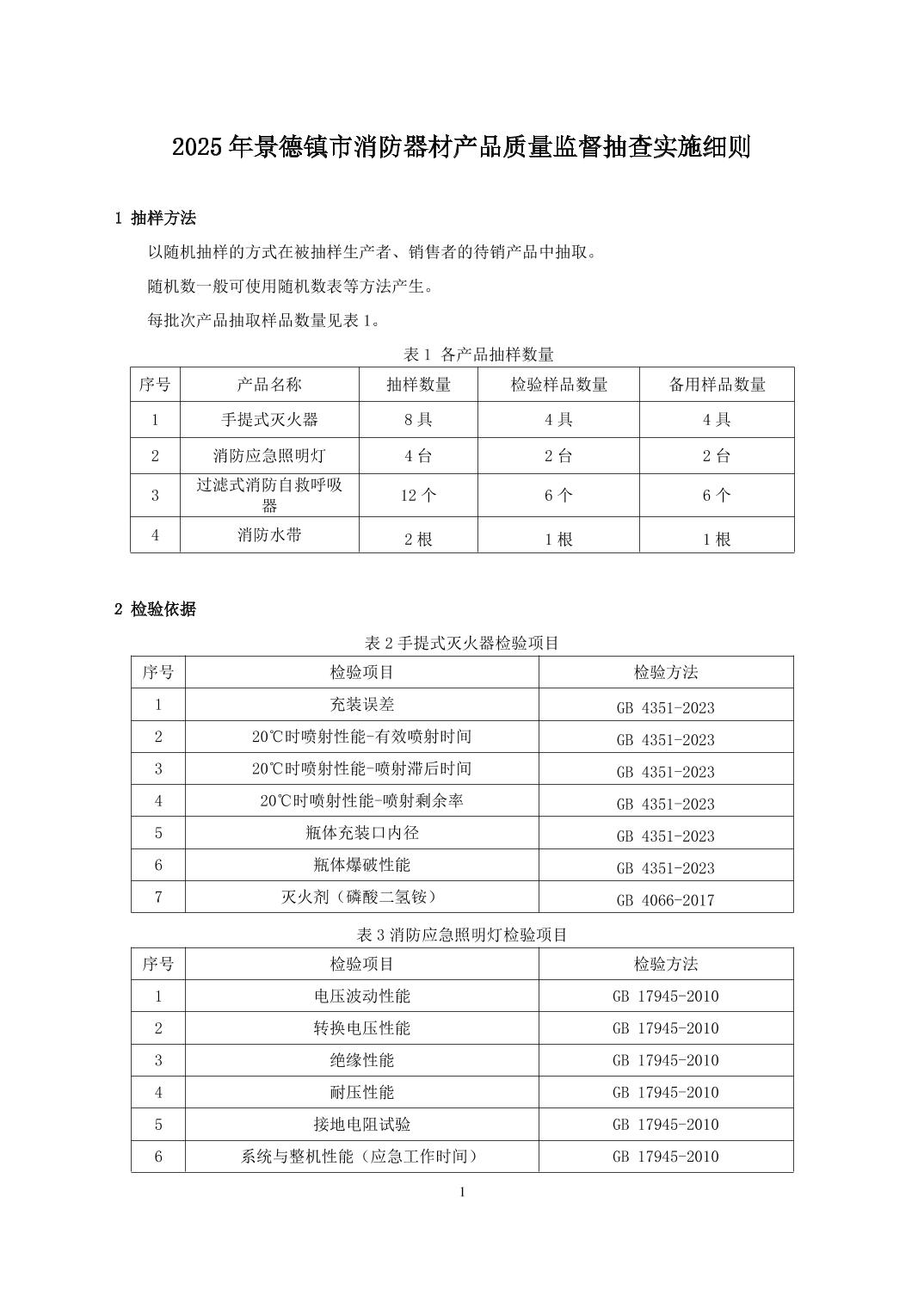 2025年景德镇市消防器材产品质量监督抽查实施细则