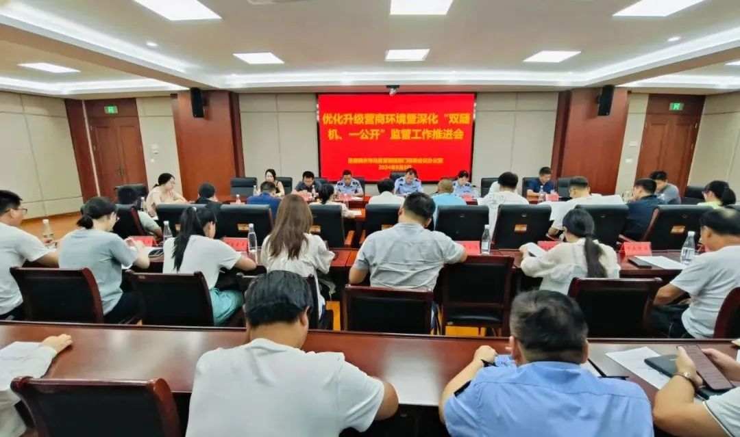 会议组织学习贯彻党的二十届三中全会精神、《江西省营商环境智慧监测评价细则(修订)》及“双随机、一公开”监管工作相关文件,通报2024年1-7月份我市“双随机、一公开”抽查检查工作情况,深入剖析成员单位的工作进展、成效与存在的问题,并部署下一步工作要求。