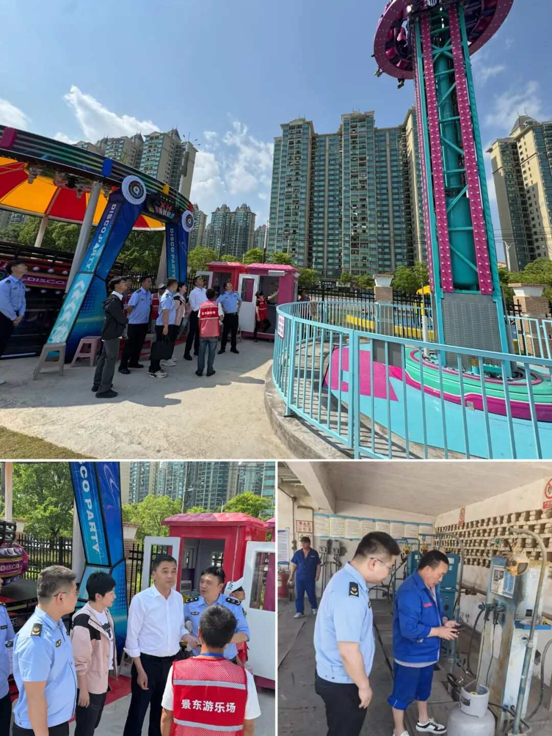 昌江区市场监管局组织执法人员对辖区内的大型游乐设施进行全覆盖安全检查,确保游客游玩安全。同时,对餐饮店、流动摊贩等的液化气瓶进行安全隐患专项检查,督促企业落实双重预防机制,确保安全生产与旅游经济“双安全”。