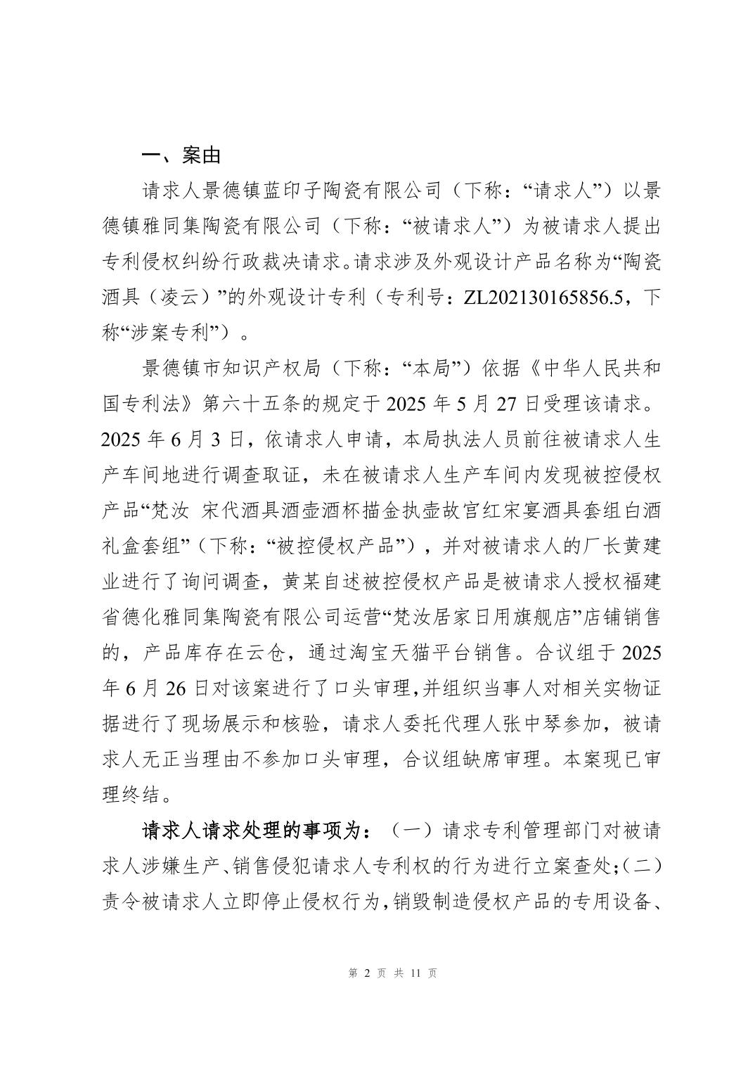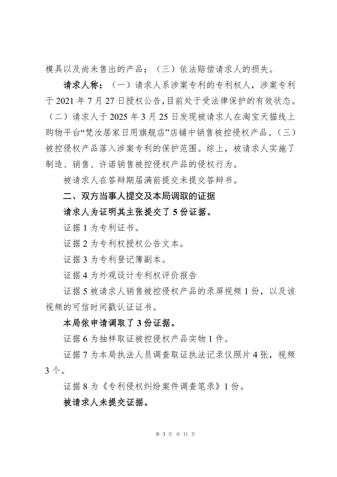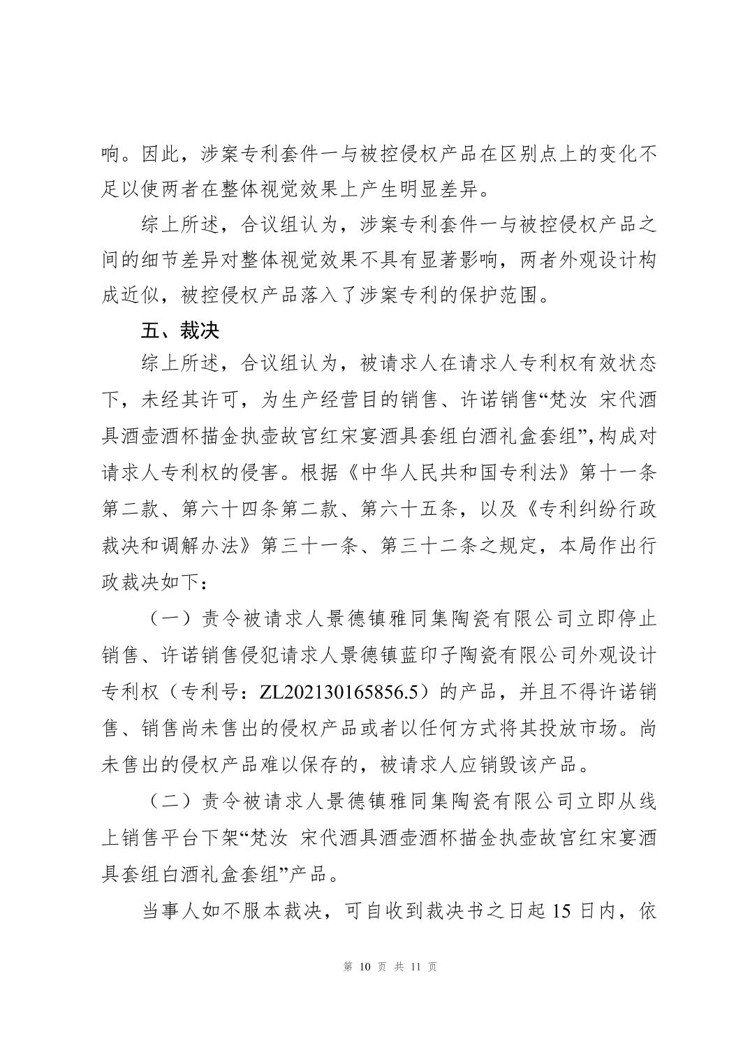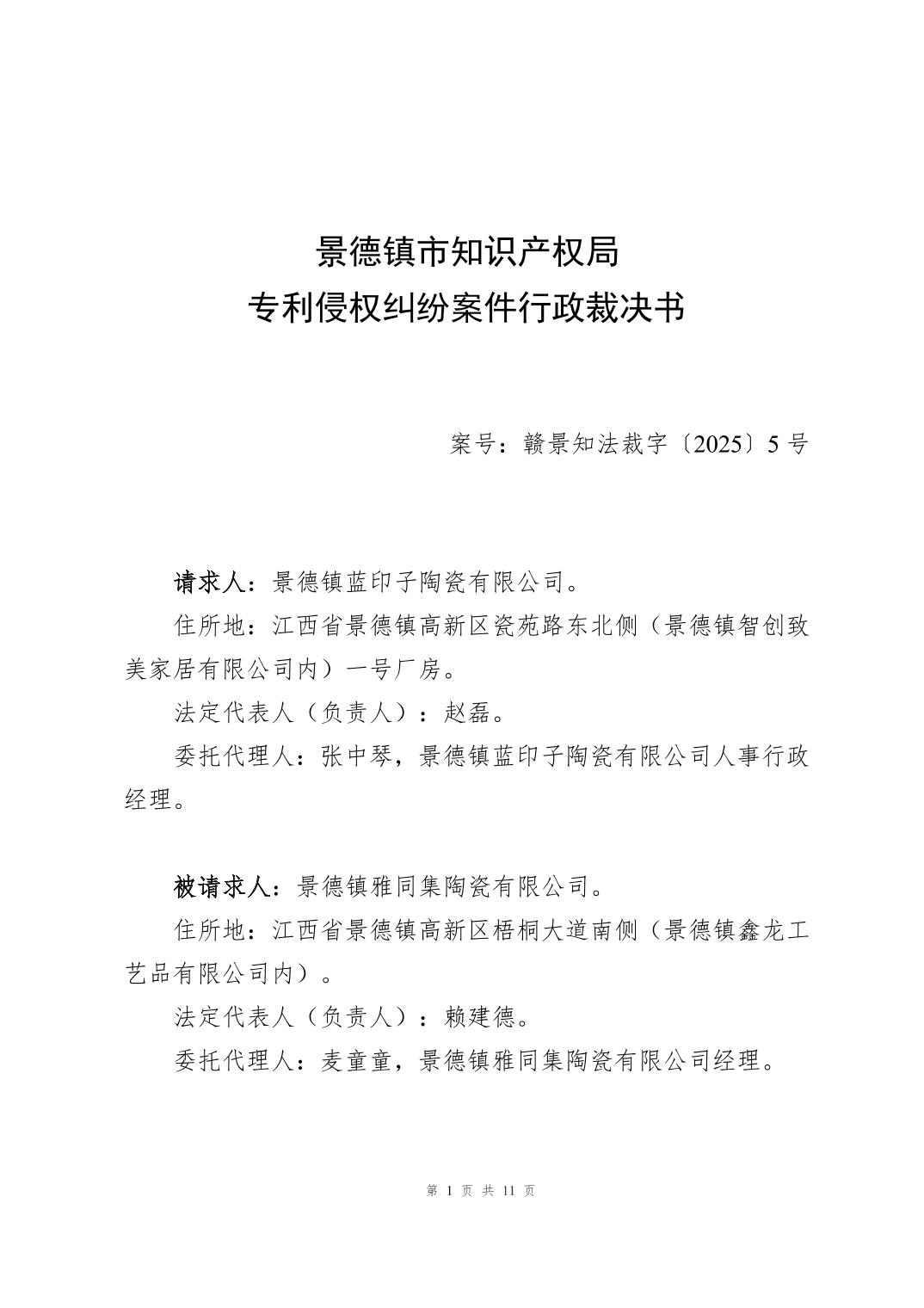 专利侵权纠纷案件行政裁决书(赣景知法裁字〔2025〕5号)