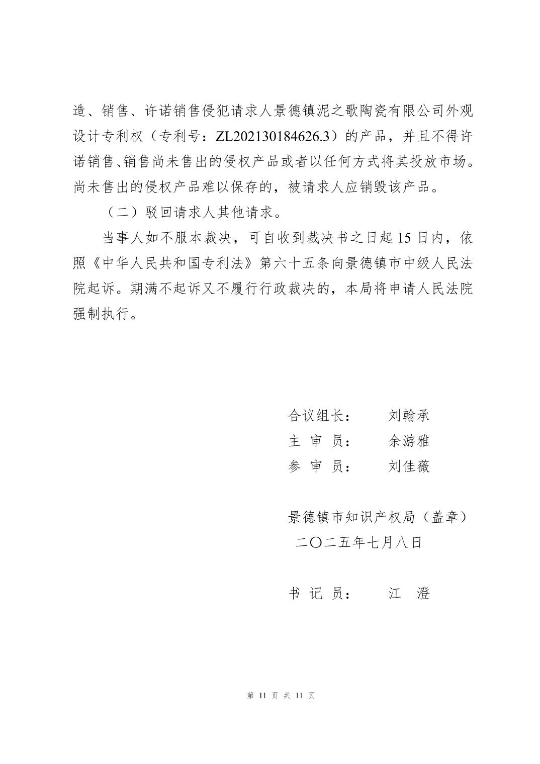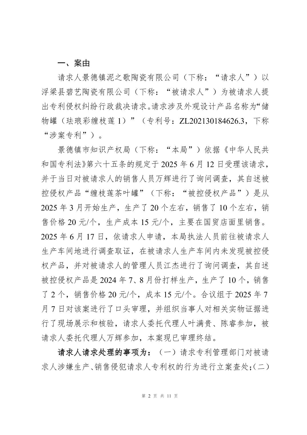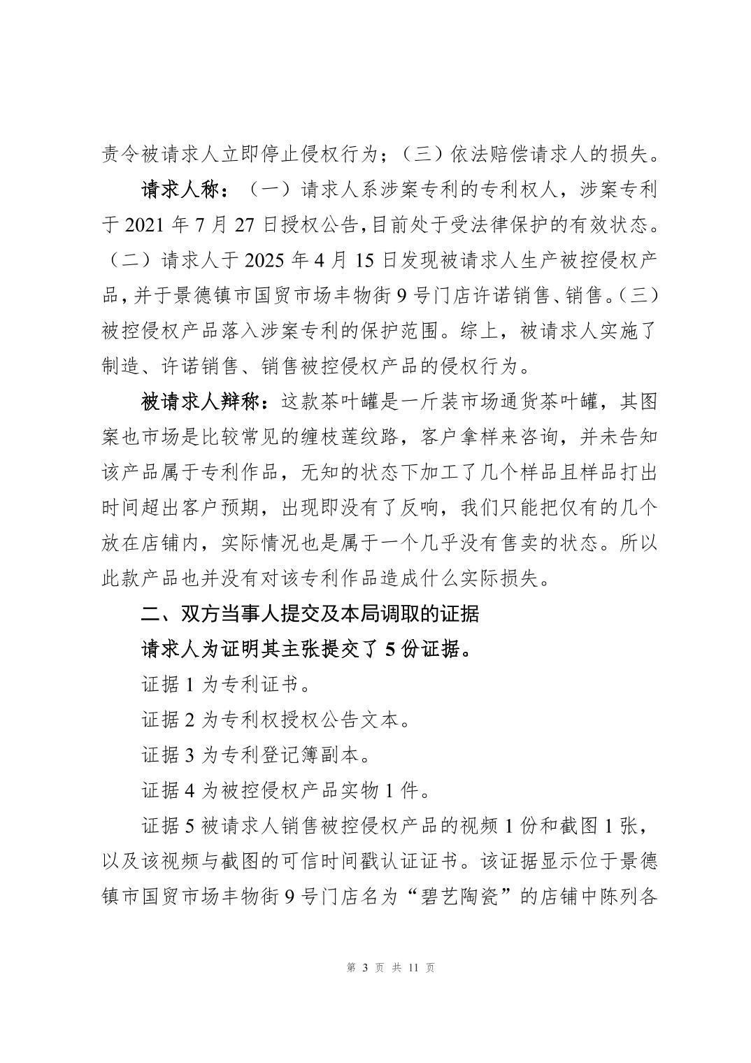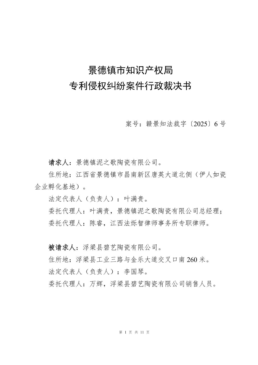 专利侵权纠纷案件行政裁决书(赣景知法裁字〔2025〕6号)