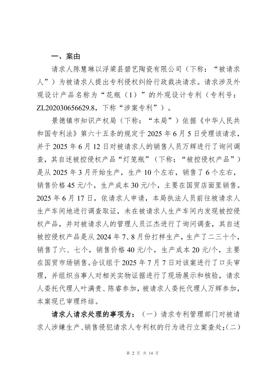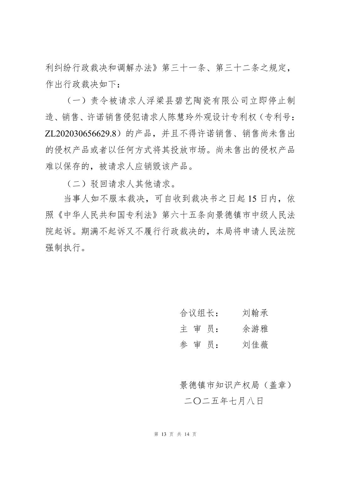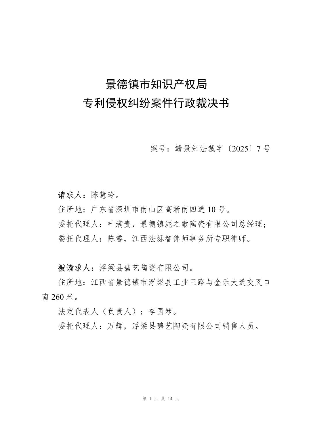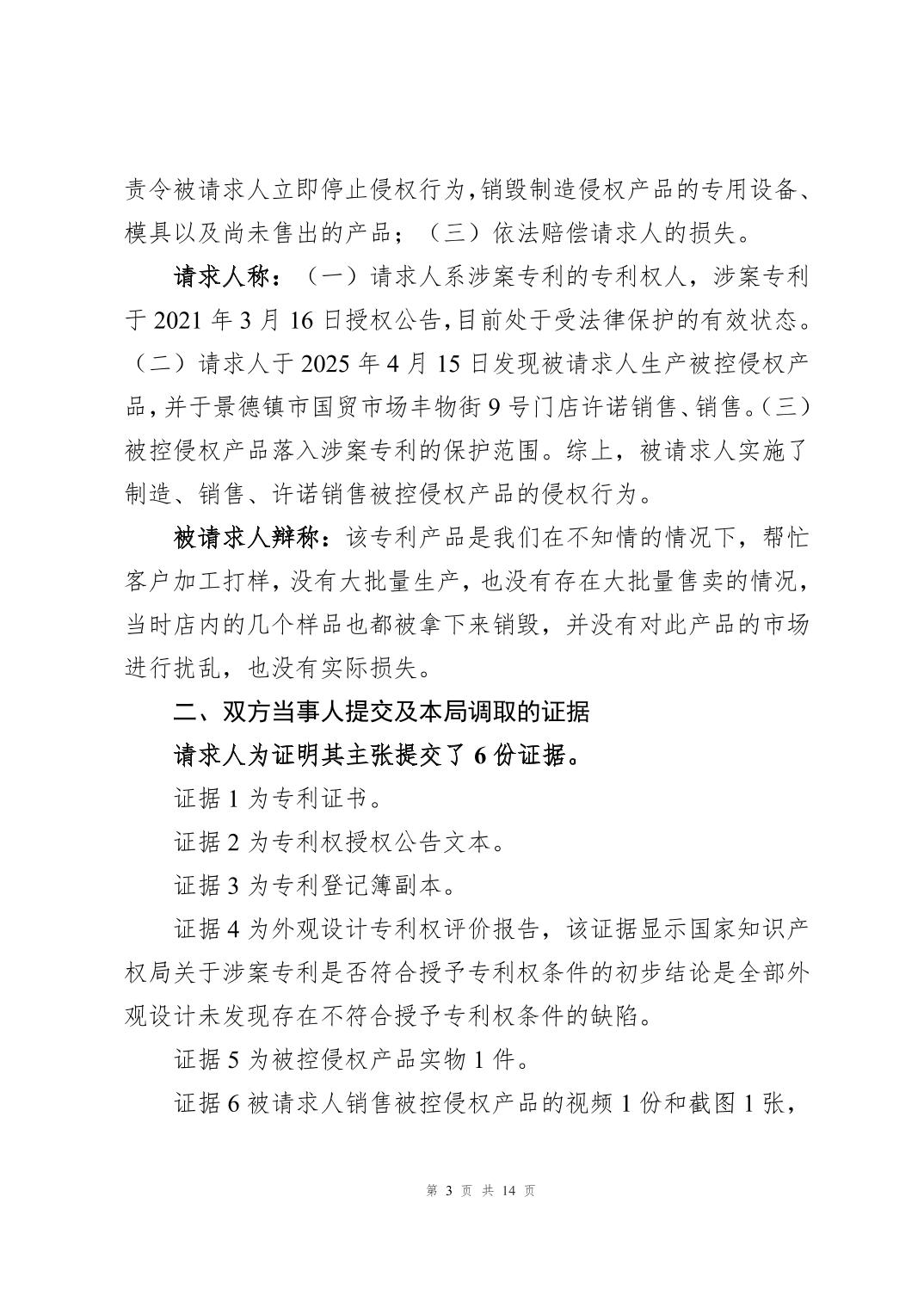 专利侵权纠纷案件行政裁决书(赣景知法裁字〔2025〕7号)