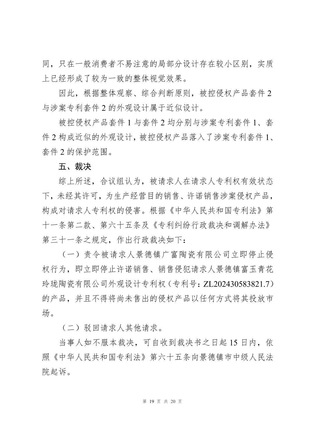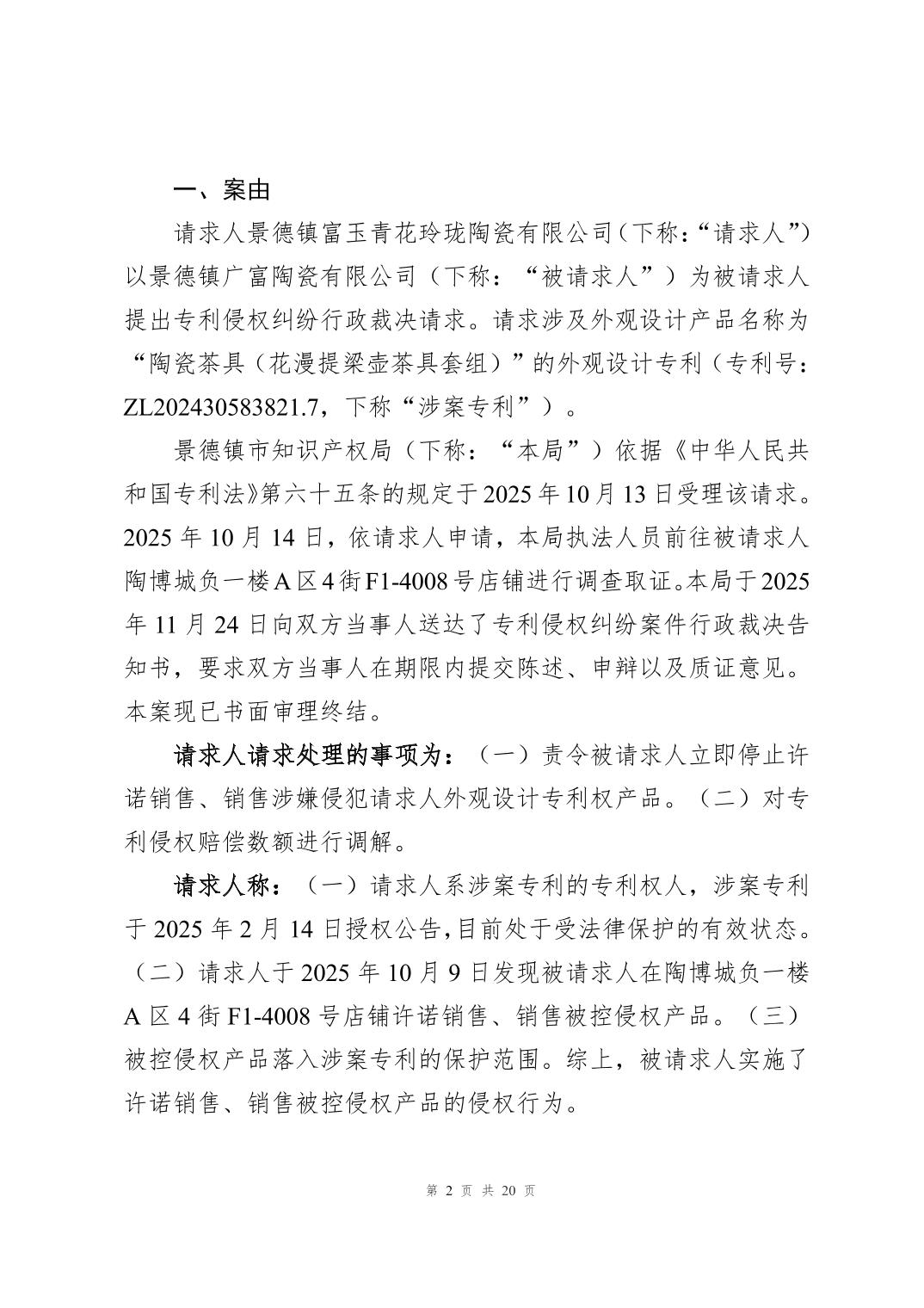 专利侵权纠纷案件行政裁决书(赣景知法裁字〔2025〕12号)