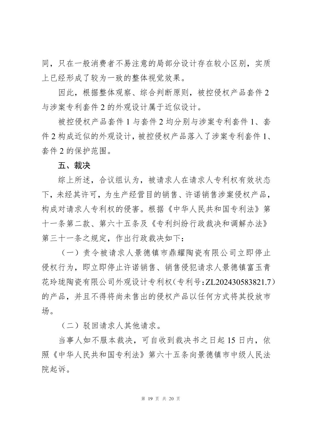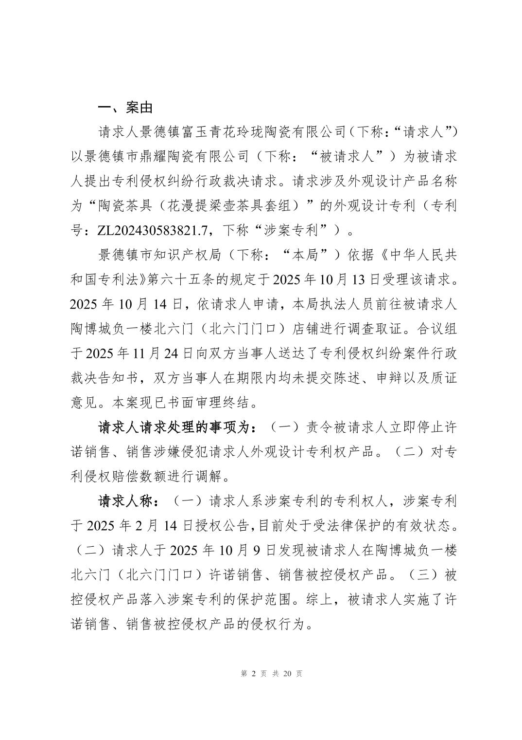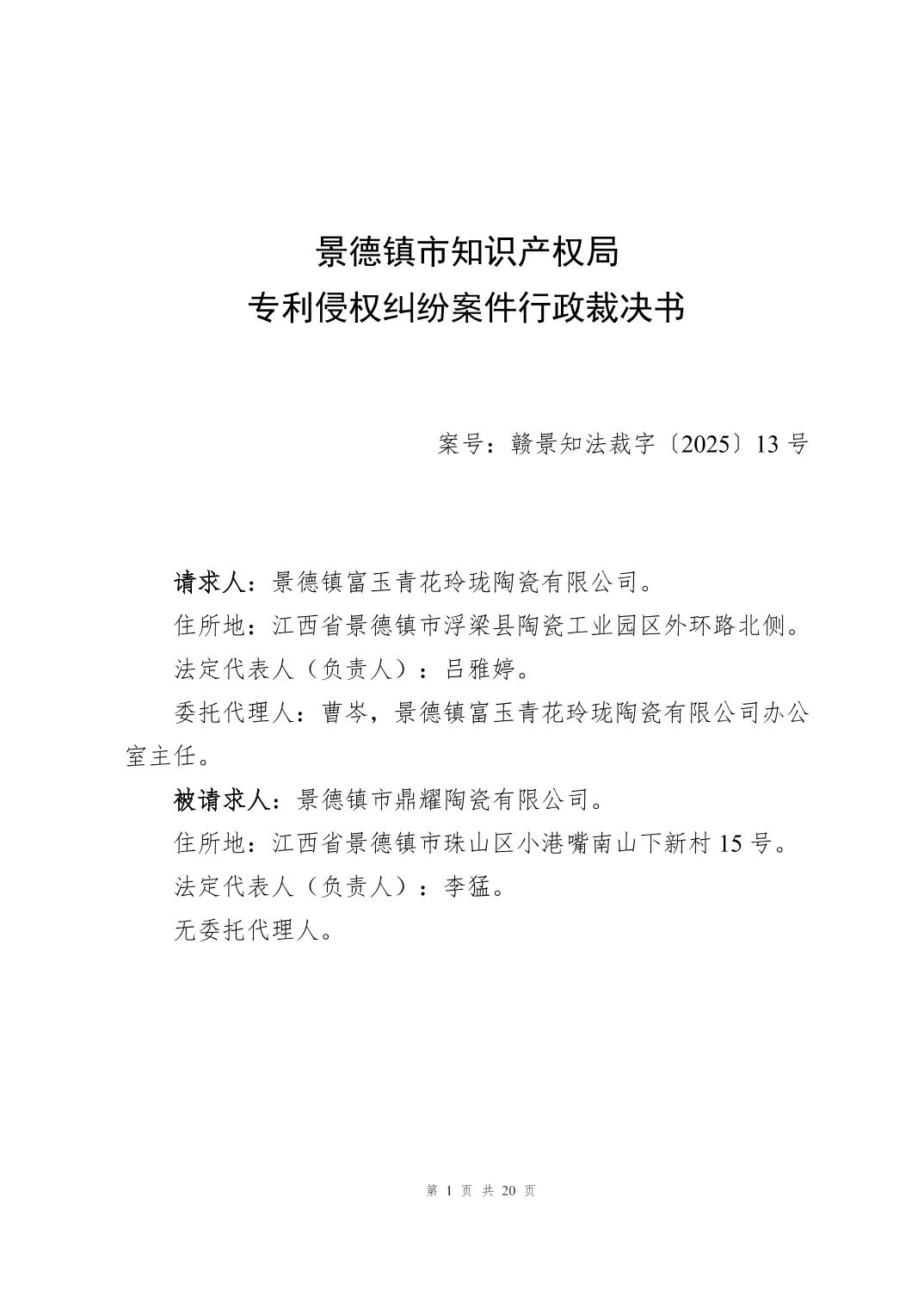 专利侵权纠纷案件行政裁决书(赣景知法裁字〔2025〕13号)